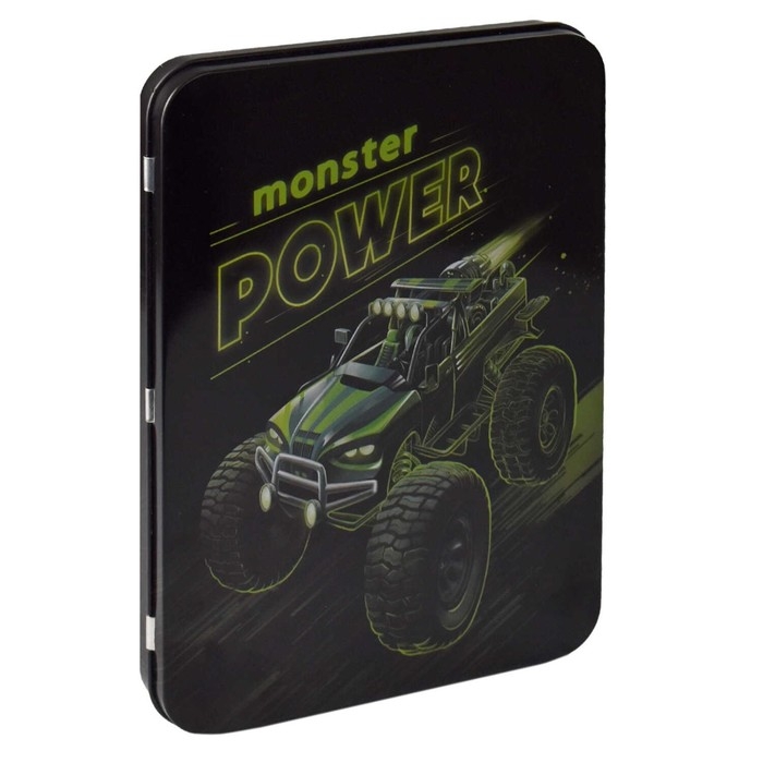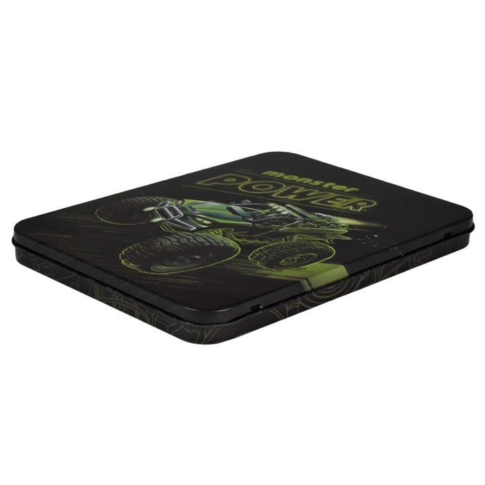 Пенал-органайзер для пишущих принадлежностей. МОНСТР-ТРАК. Материал: металл. Комплектность: без наполнения. Размер: 23,5x17,5x2 см. Количество отделений - 1. Отделка: полноцветная печать. Индивидуальная упаковка: ПЭТ-пакет.