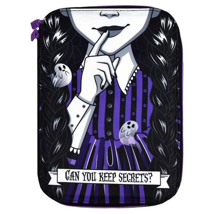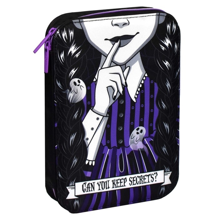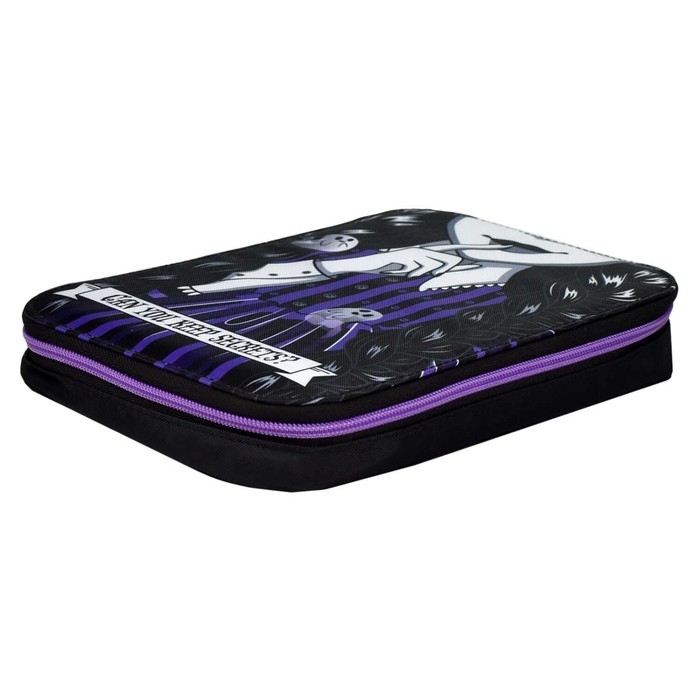 Пенал-органайзер для пишущих принадлежностей. МИЛАЯ ГОТИКА. Материал: полиэстер. Комплектность: без наполнения. Размер: 16.5х23.5х3 см. Количество отделений - 1. Застёжка - молния. Материал собачки: металл. Форма собачки - брендированная собачка. Отделка: сублимационная печать. Особенности: четыре внутренних каскадных отделения, с резинкой. Крепления для канцелярских принадлежностей: есть. Подклада: есть. Индивидуальная упаковка: ПЭТ-пакет.