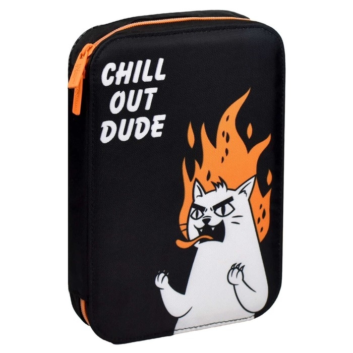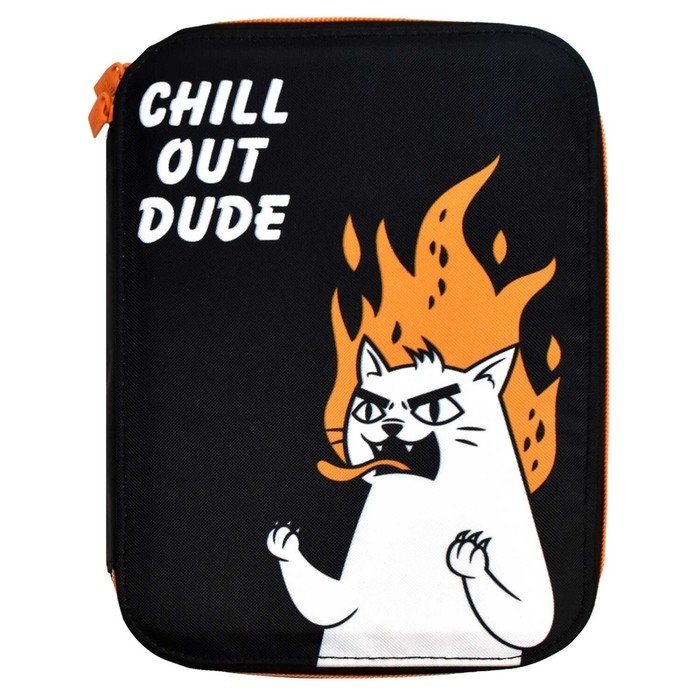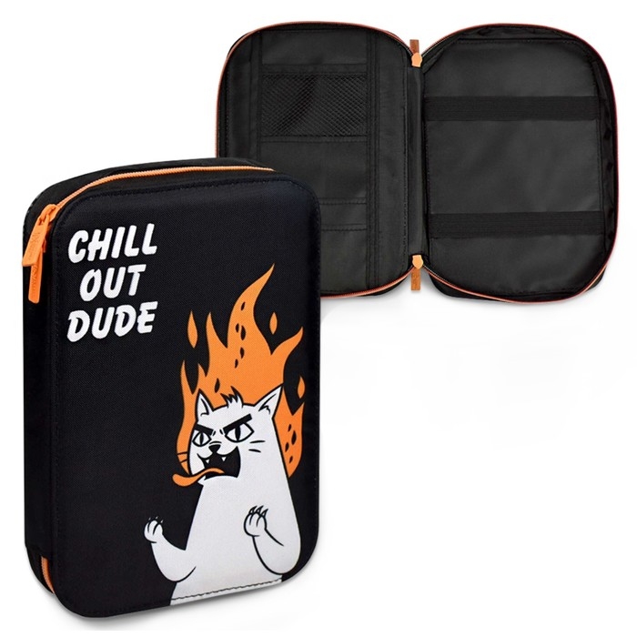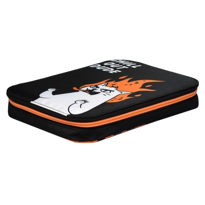 Пенал-органайзер для пишущих принадлежностей. ЯРОСТНЫЙ КОТ. Материал: полиэстер. Комплектность: без наполнения. Размер: 16.5х23.5х3 см. Количество отделений - 1. Застёжка - молния. Материал собачки: металл. Форма собачки - брендированная собачка. Отделка: сублимационная печать. Особенности: четыре внутренних каскадных отделения, с резинкой. Крепления для канцелярских принадлежностей: есть. Подклада: есть. Индивидуальная упаковка: ПЭТ-пакет.