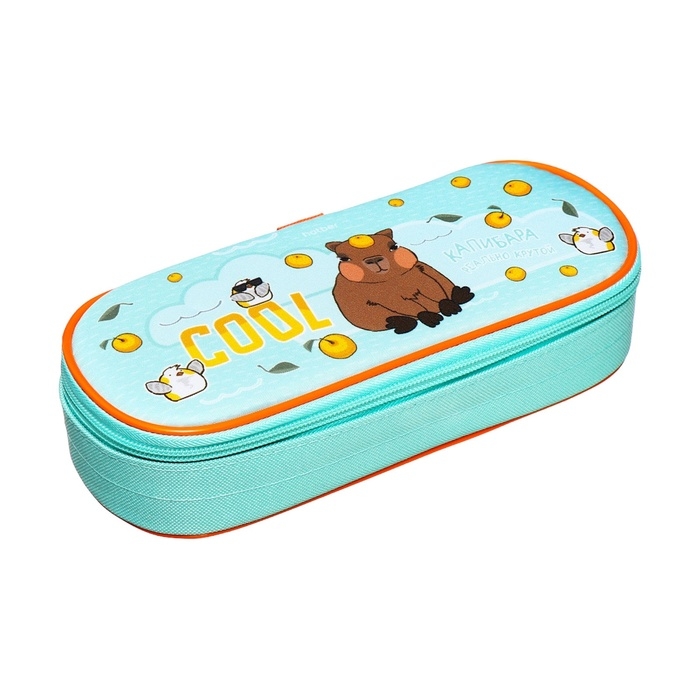 Пенал-футляр мягкий 90 х 220 х 50 мм, текстильный, Hatber "Реально крутой Капибара" бирюзовый NPk_73278
