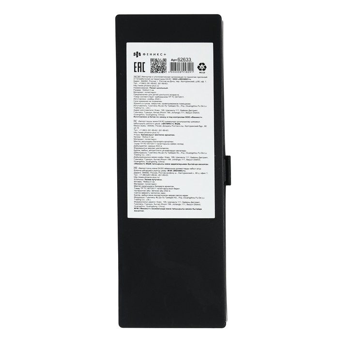 Пенал. НАУШНИКИ. Материал: полистирол. Комплектность: без наполнения. Размер: 18х6х2,5 см. Количество отделений - 1. Застёжка - замок-защёлка. Отделка: шелкография. Крепления для канцелярских принадлежностей: нет. Индивидуальная упаковка: ПЭТ-пакет.