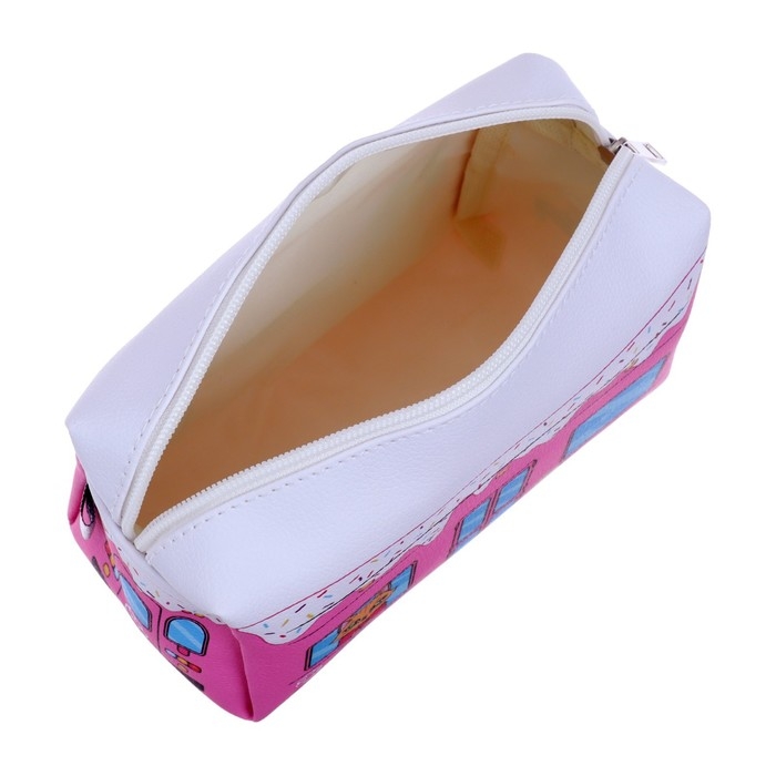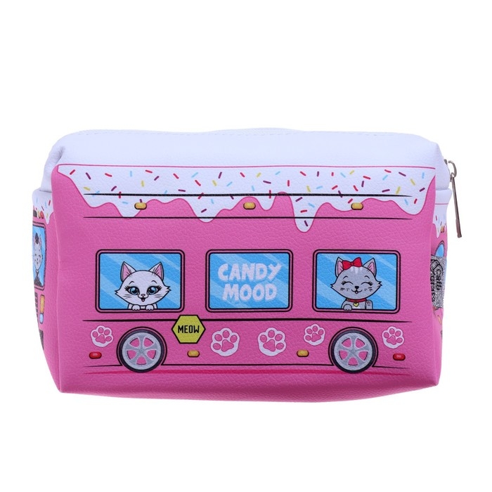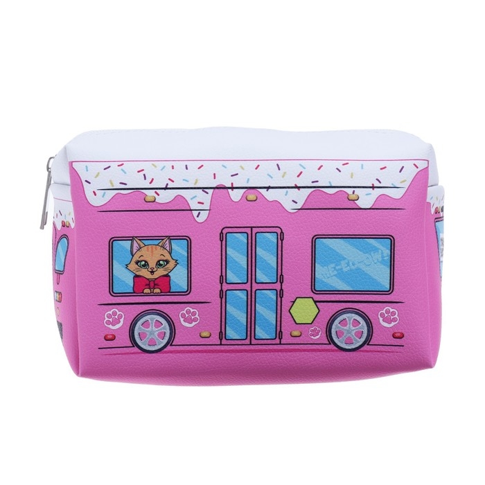 Пенал мягкий, 1 отделение, 100 х 180 х 80 мм, объёмный "Автобус с котятами", розовый