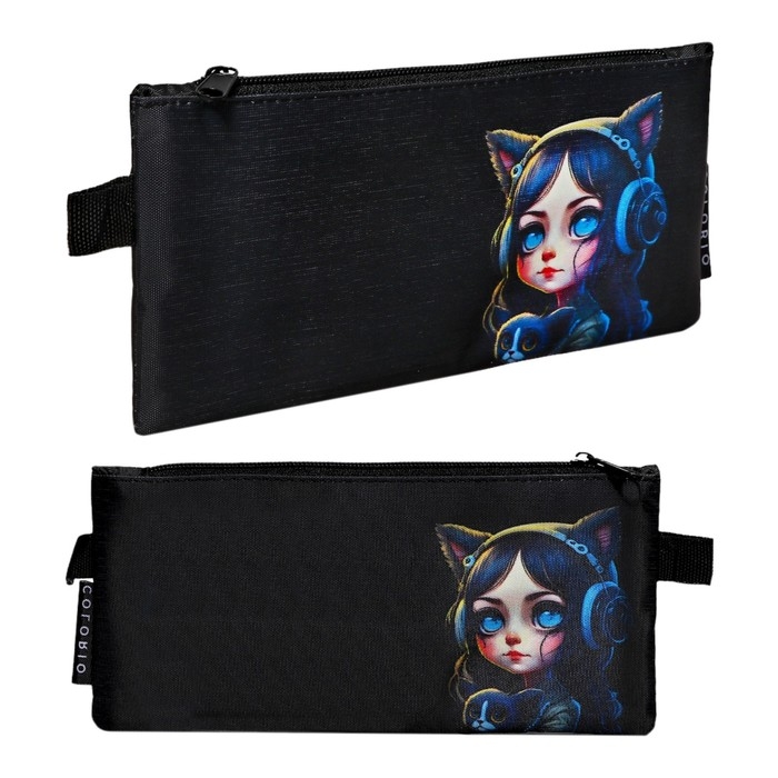 Пенал мягкий 1 отделение, 115 х 220 мм, плоский, Colorio, для девочки, черный