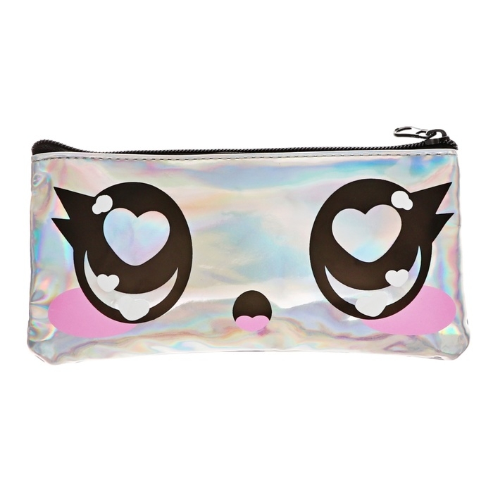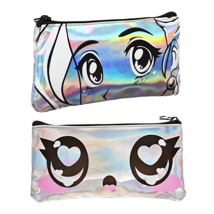 Размер 11,5 х 22 х 1 см. Пенал голографический с двусторонним рисунком плоский прямоугольный с одним отделением на молнии. Выполнен из прочного материала.
