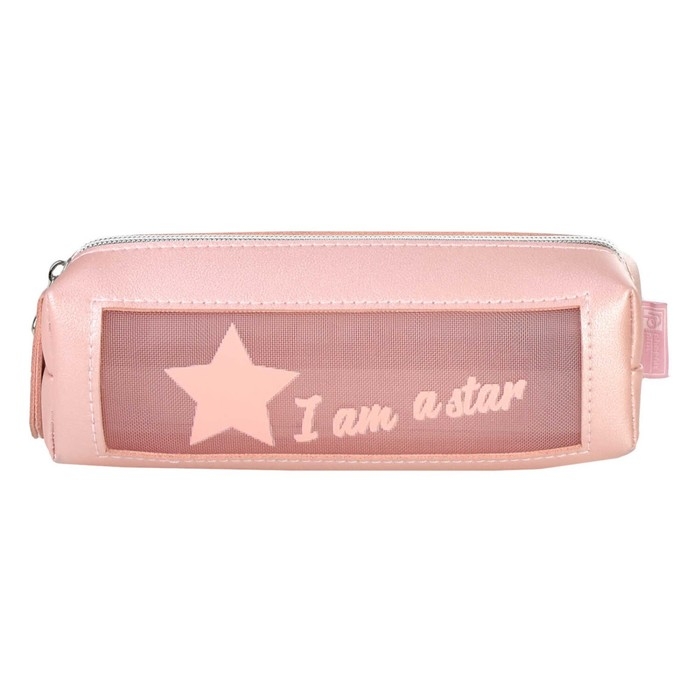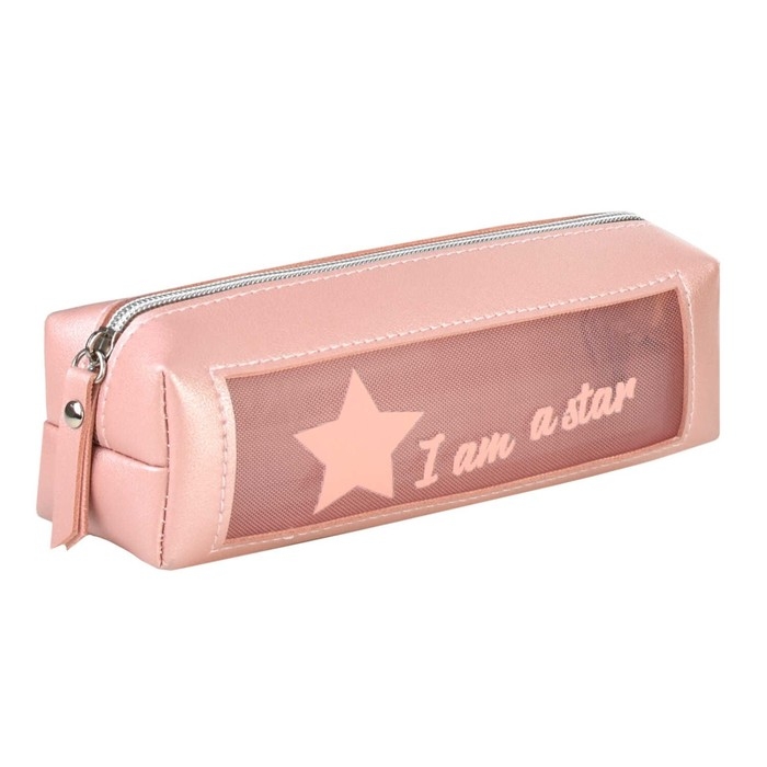 Пенал мягкий, 1 отделение, 55 х 195 х 60 мм, объёмный, искусственная кожа, с окном, нейлон, Феникс "Звезда" розовый 61312