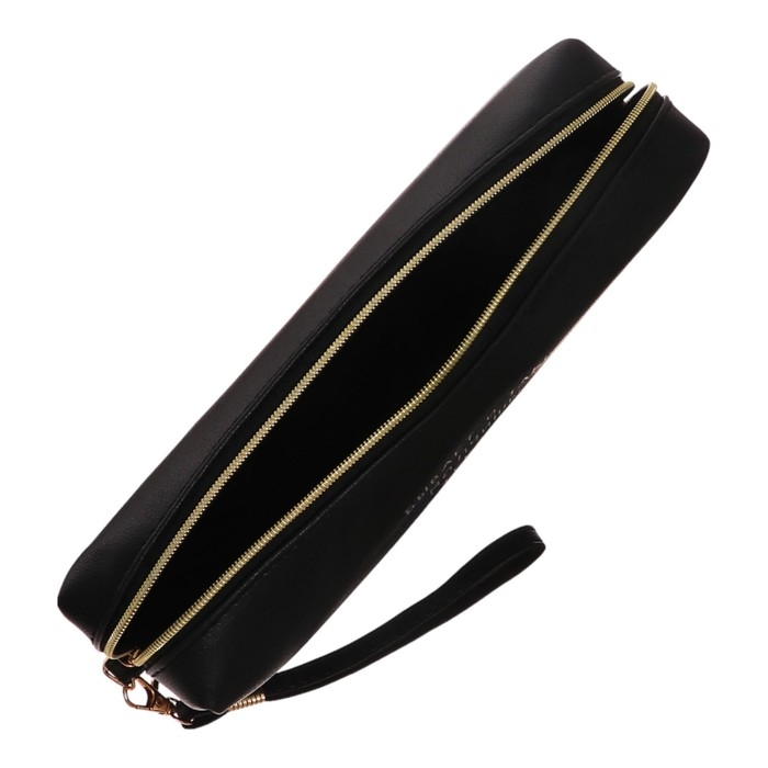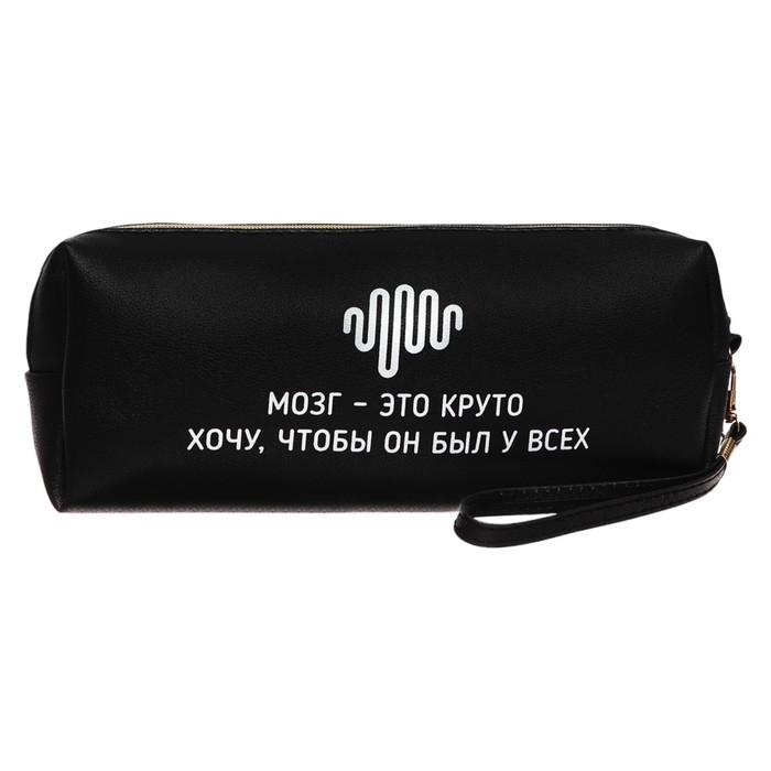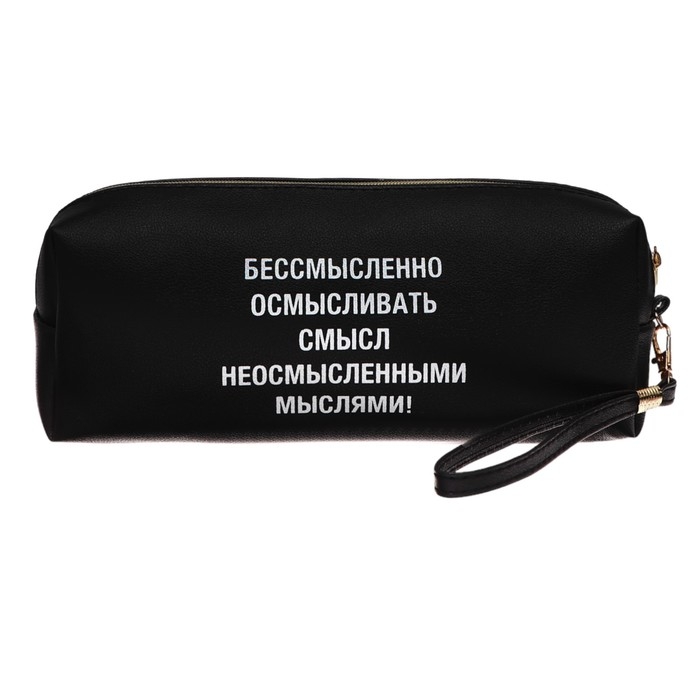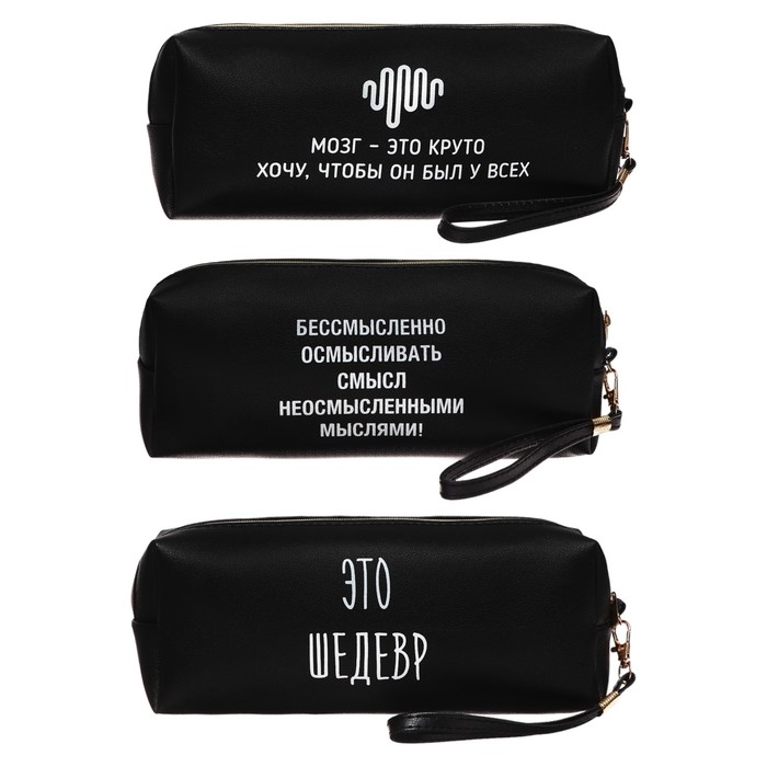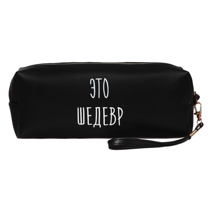 Пенал-косметичка "deVENTE. Это шедевр" 21,5x8x5 см, прямоугольный для 75 предметов, на молнии, матовая черная искусственная кожа, с ручкой-петлей на карабине, 3 дизайна ассорти, индивидуальная упаковка.