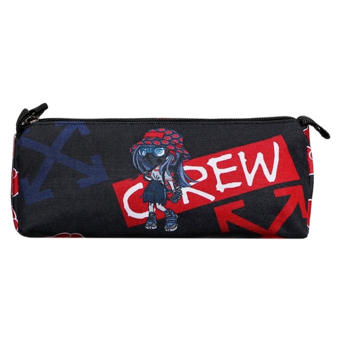 Пенал мягкий, 1 отделение, 85 х 200 х 65 мм, объёмный, Феникс "Девочка с баллончиком" чёрный/красный 65247