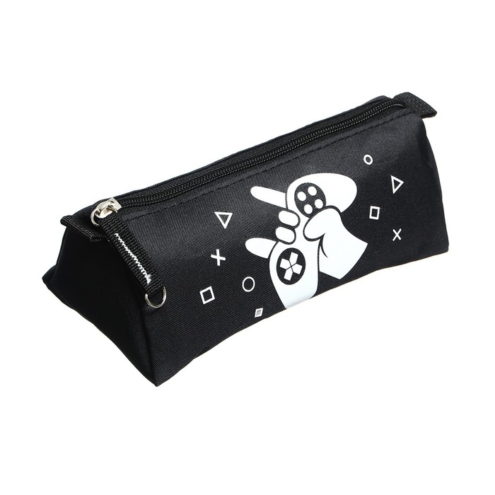 Пенал мягкий, 1 отделение, 85 х 200 х 65 мм, объёмный, Феникс "Джойстики" чёрный/белый 61897