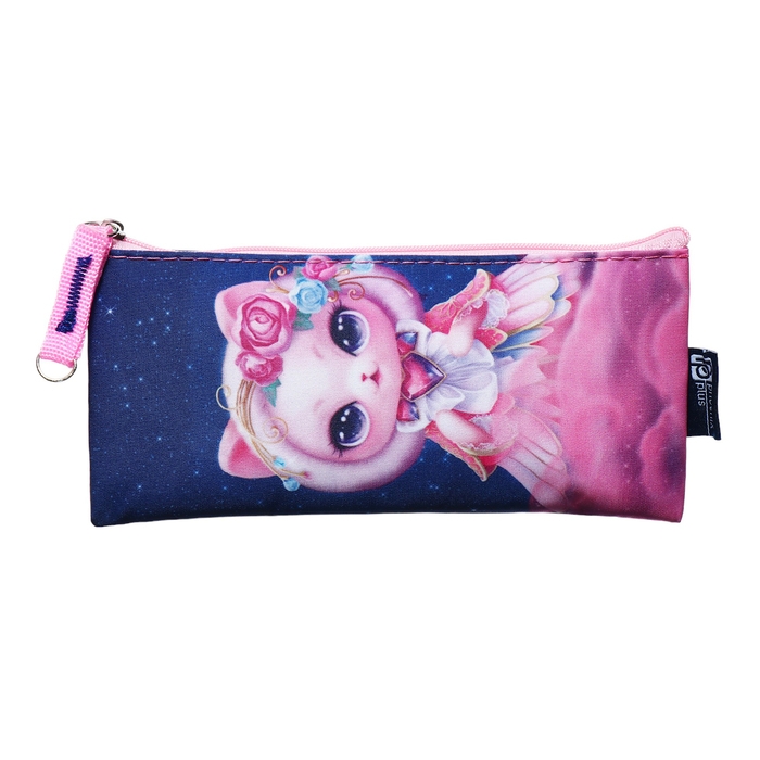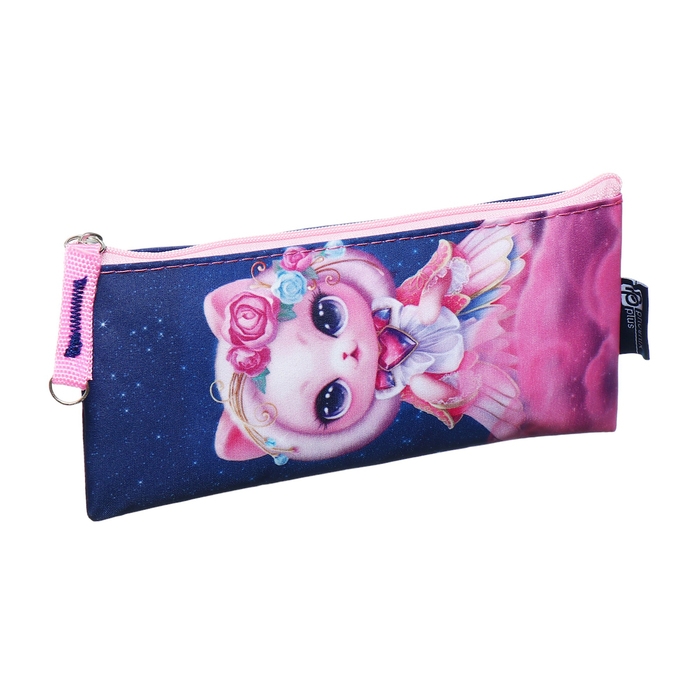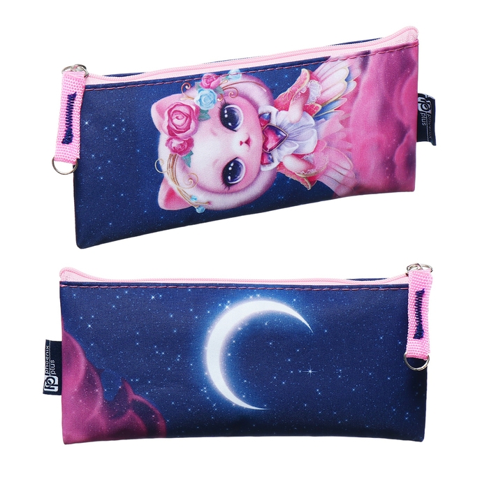 Пенал мягкий, 1 отделение, 90 х 195 мм, плоский, Феникс "Кошка-принцесса" фиолетовый/розовый 67595