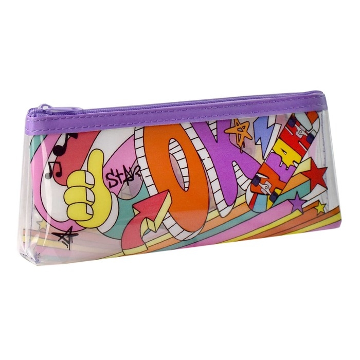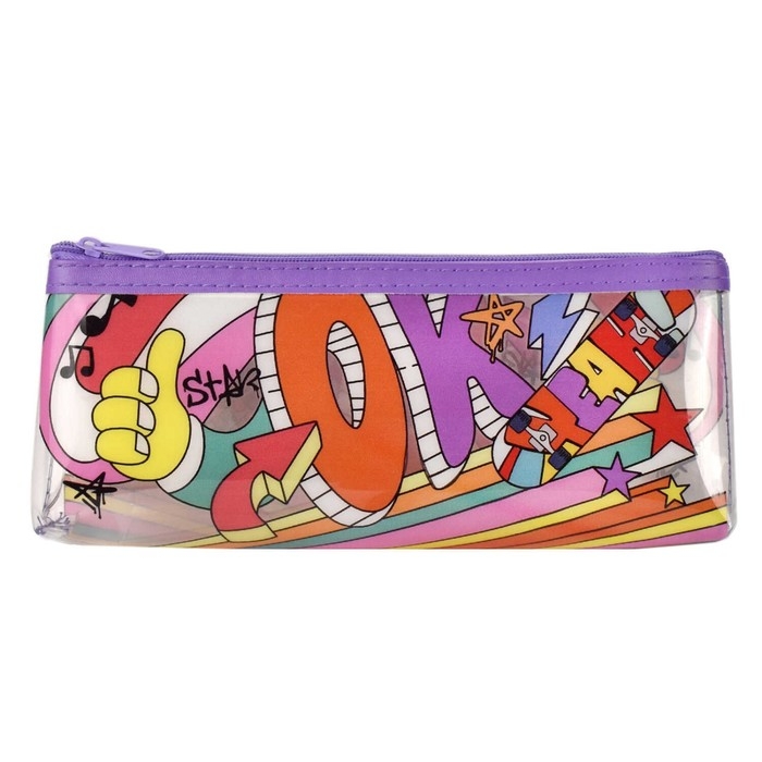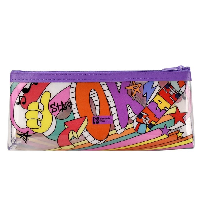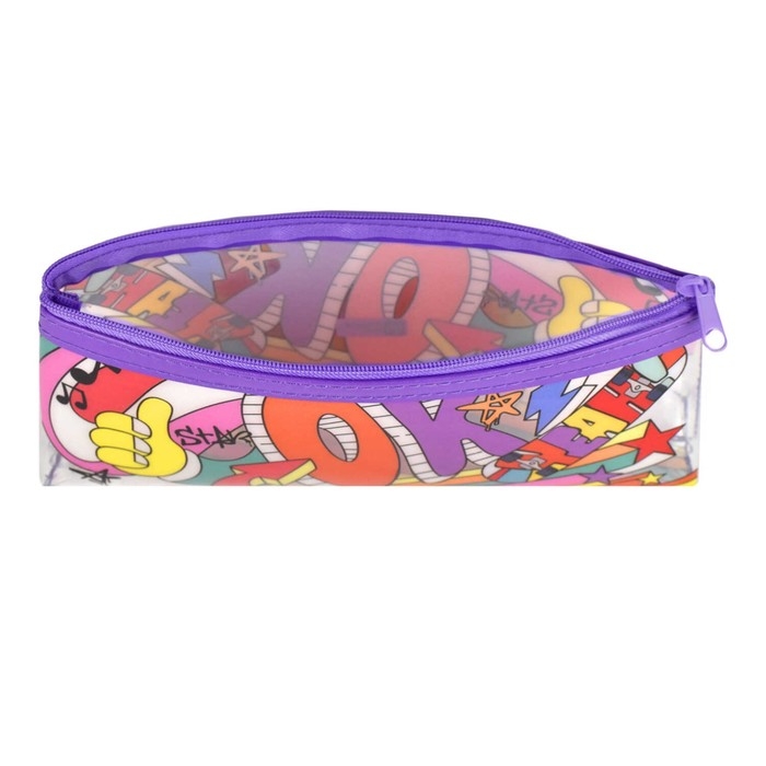 Пенал мягкий, 1 отделение, 90 х 210 х 35 мм, объёмный, Феникс "Стикеры" ТПУ белый/фиолетовый 65735