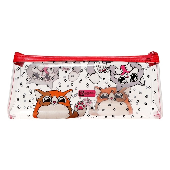 Пенал мягкий, 1 отделение, 90 х 210 х 35 мм, объёмный, силиконовый, Феникс "Два кота" белый/розовый 65733