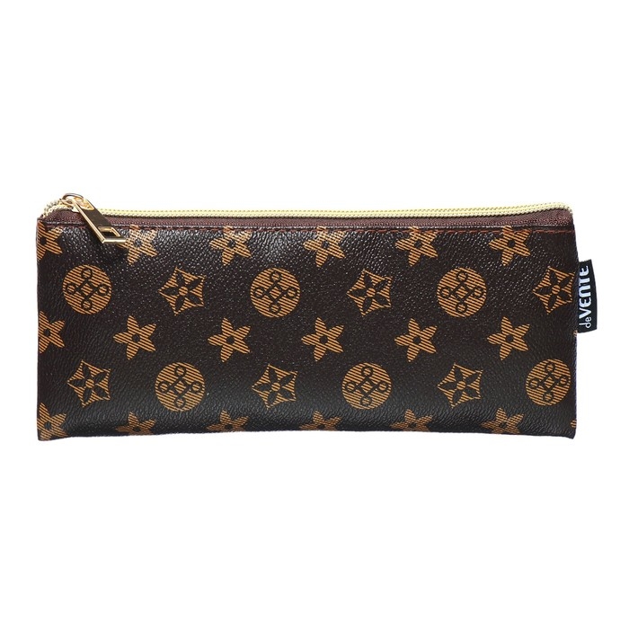 Пенал "deVENTE. Monogram" 21,5x9x1 см, плоский для 35 предметов, на молнии, искусственная кожа до -40C с антивандальной фактурой, с подкладом, коричневый