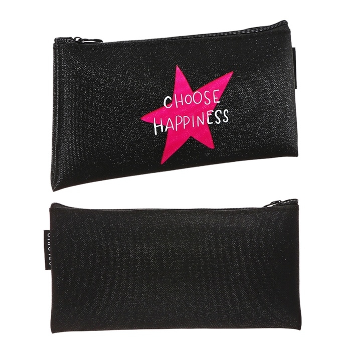 Пенал мягкий 1 отделение, 90х200, для девочки, чёрный, Colorio "Фразы"