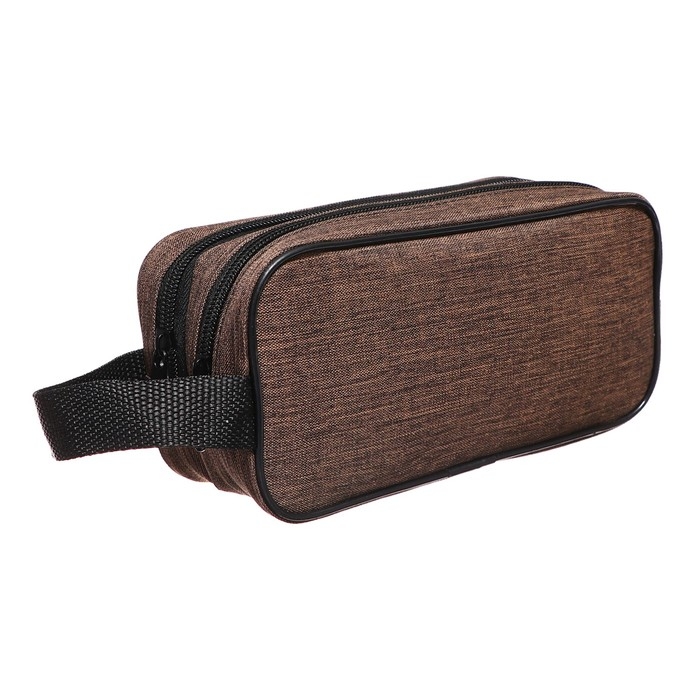 Пенал мягкий 2 отделения, 100 х 220 х 70 мм, объёмный, с ручкой,Calligrata, "Коричневый"