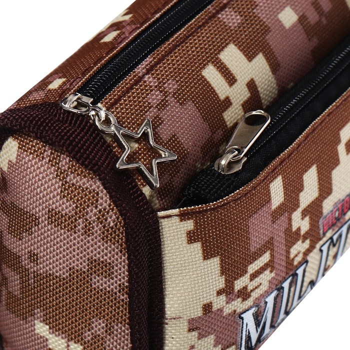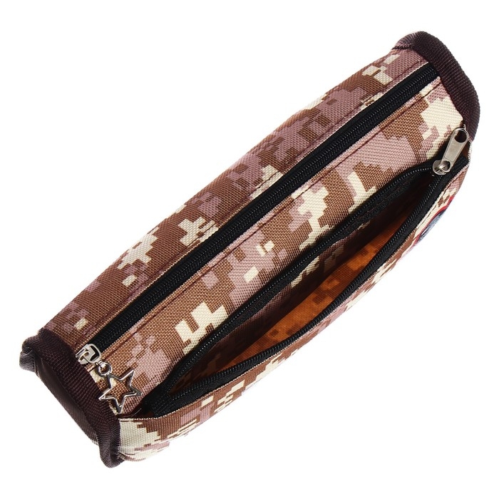 Пенал мягкий 2 отделения, 80 х 210 х 65 мм, объёмный, Calligrata "Миллитари", коричневый