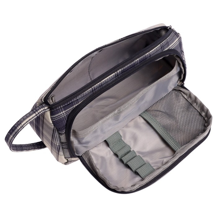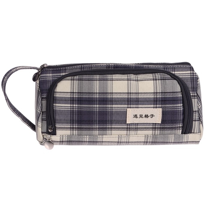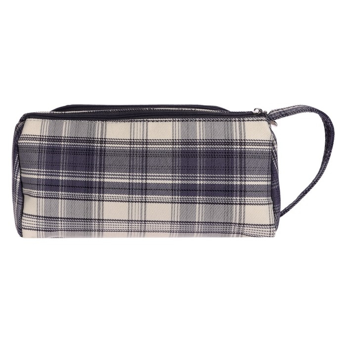 Пенал мягкий 2 отделения, 95 х 210 х 90 мм, объёмный с откидной планкой, с ручкой, Calligrata, "Шотландка", серо-синяя