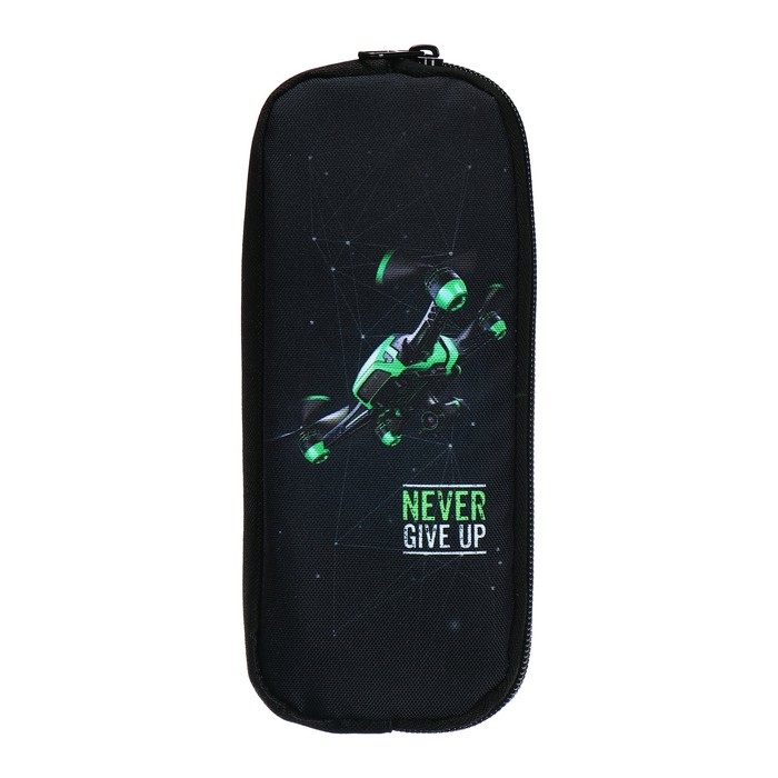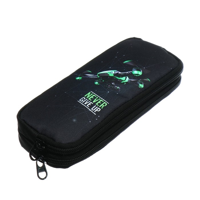 Пенал мягкий, 2 отделения, объёмный, 90 х 220 х 40 мм, Stavia "Дрон" чёрный/зелёный 86242