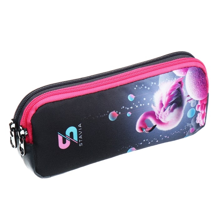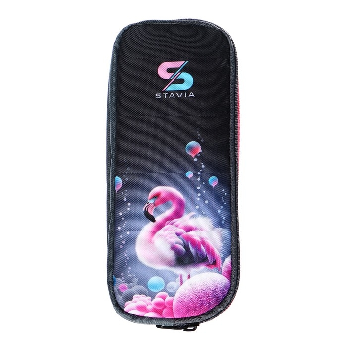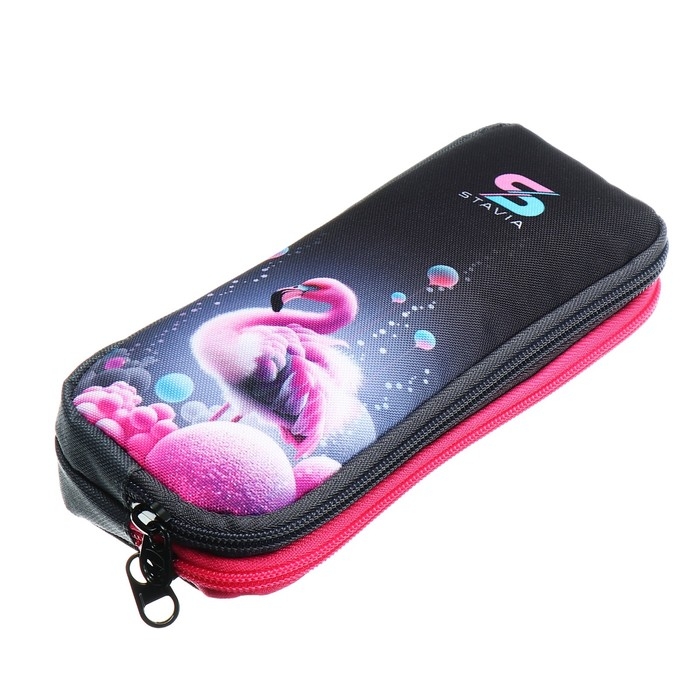 Пенал мягкий, 2 отделения, объёмный, 90 х 220 х 40 мм, Stavia "Фламинго" серый/розовый 86225