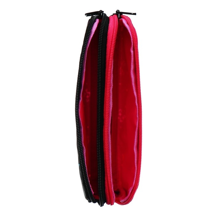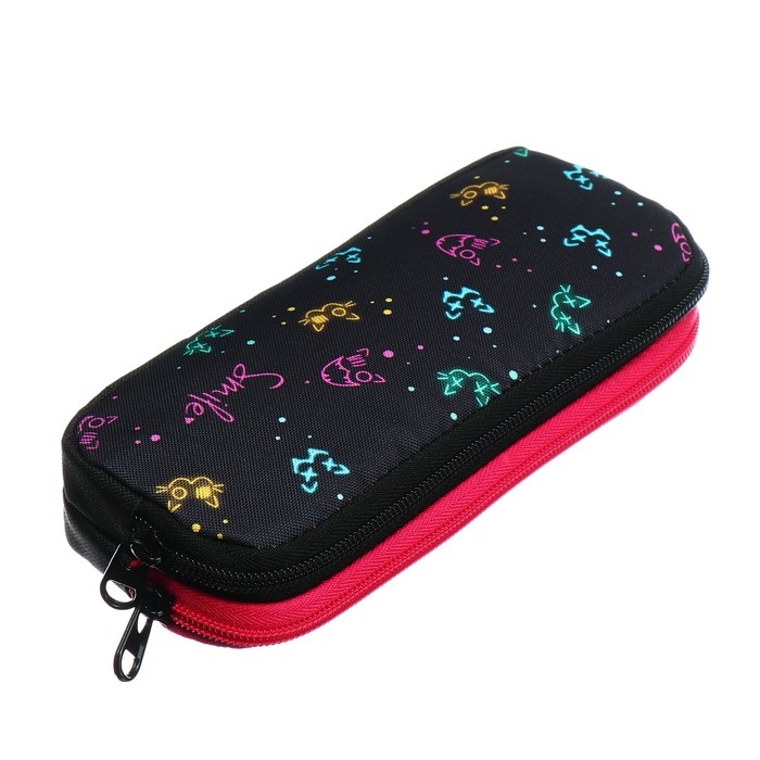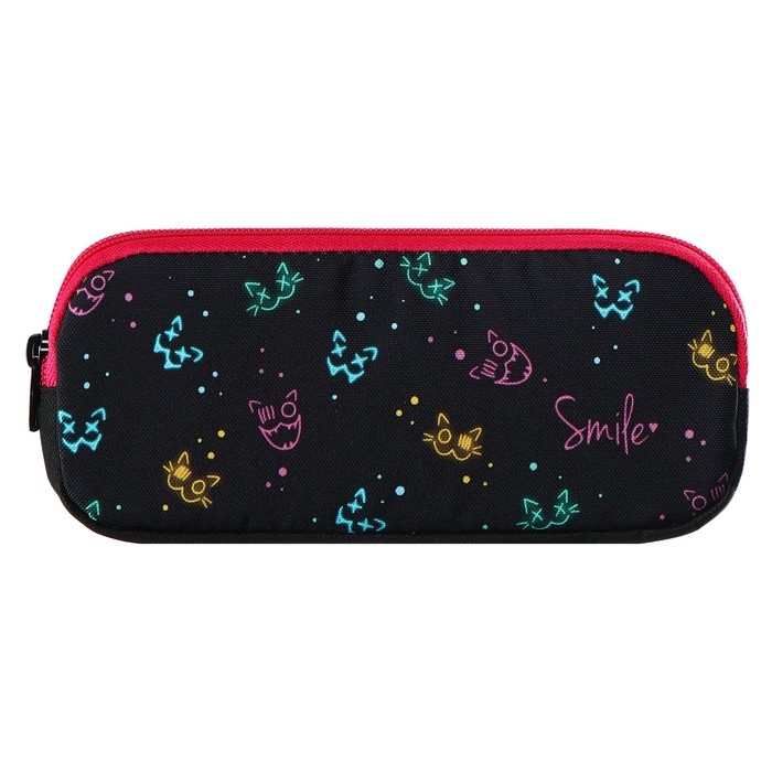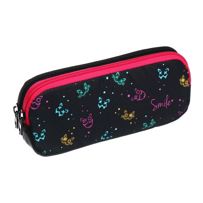 Пенал мягкий, 2 отделения, объёмный, 90 х 220 х 40 мм, Stavia "Неон" чёрный 86213