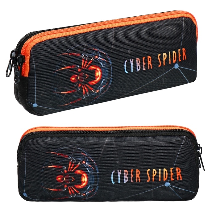 Пенал мягкий, 2 отделения, объёмный, 90 х 220 х 40 мм, Stavia "Паук" чёрный 86234