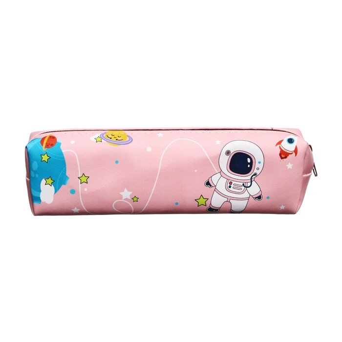 Пенал школьный, "Космос" на молнии, розовый