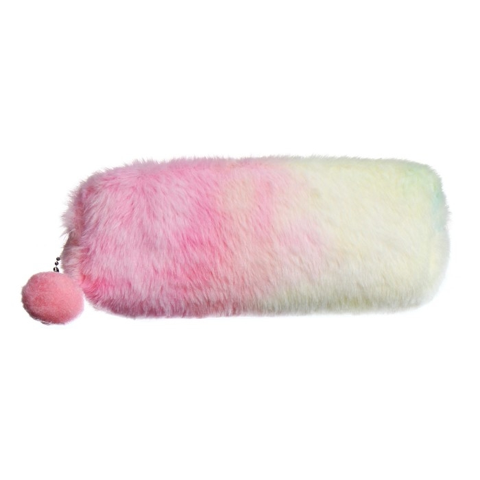 Пенал школьный меховой на молнии Calligrata "Бамбошка", микс