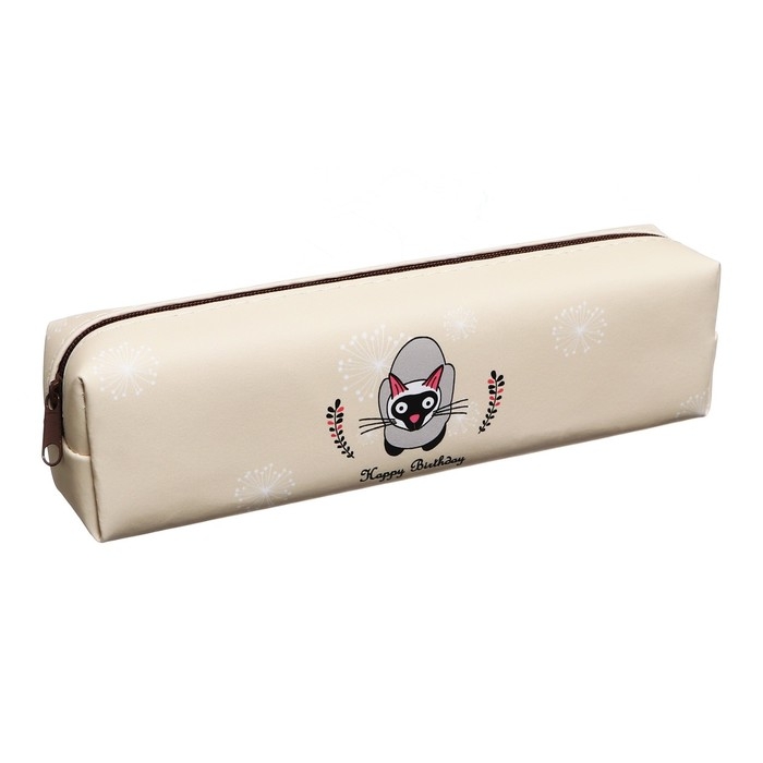 Пенал школьный "Зверьки", на молнии, бежевый