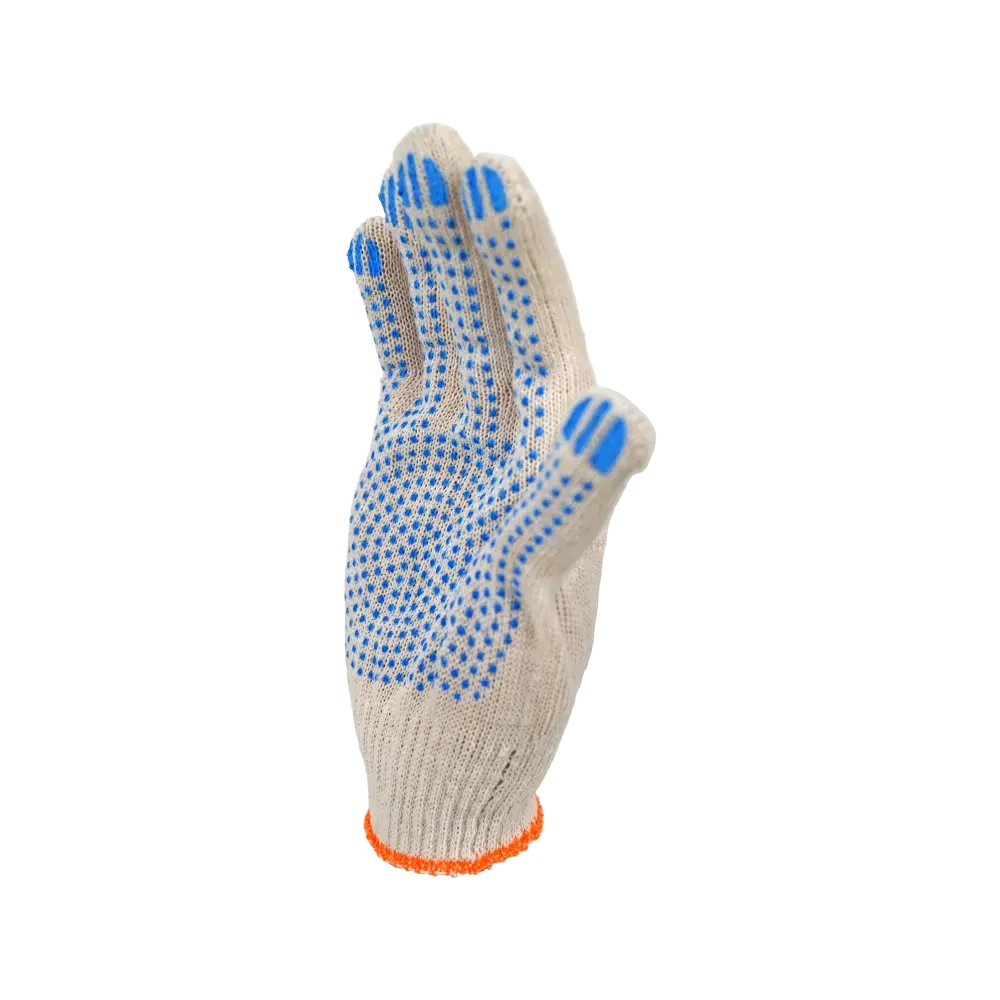 Хлопчатобумажные перчатки используются в строительстве, во время ремонта, садово-огородных работ, на субботниках, многих видах производства. Такие перчатки позволяют уберечь руки от всевозможных механических повреждений: царапин, заноз, порезов. Перчатки получили широкое распространение благодаря ряду положительных характеристик: гипоаллергенность, экологичность, удобство при работе, практичность. Благодаря ПВХ-покрытию количество этих характеристик заметно увеличивается. Покрытие ПВХ улучшает сцепляемость с предметами, ликвидирует соскальзывание, повышает износостойкость изделия.
