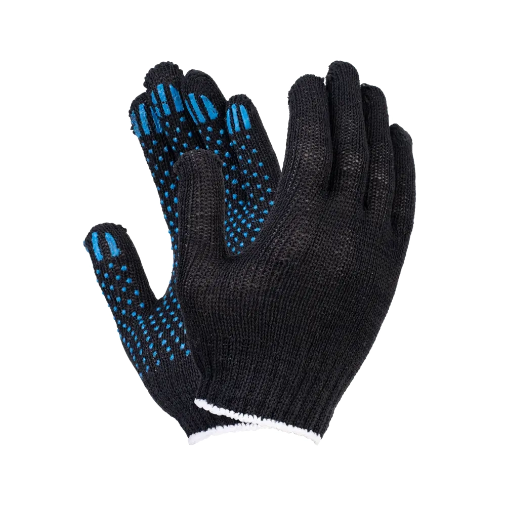 Перчатки х/б с ПВХ, 32гр, 10 класс, точка, черные