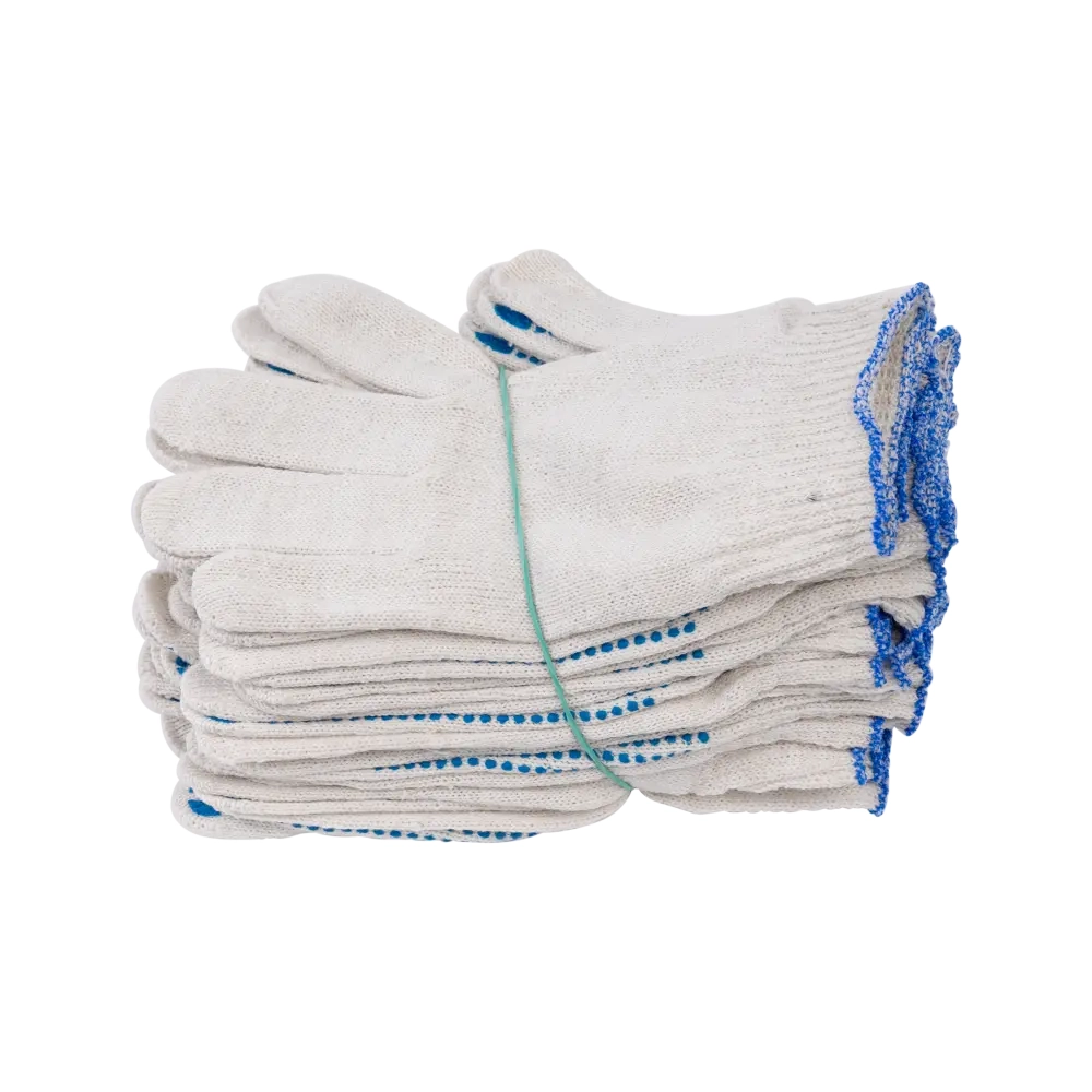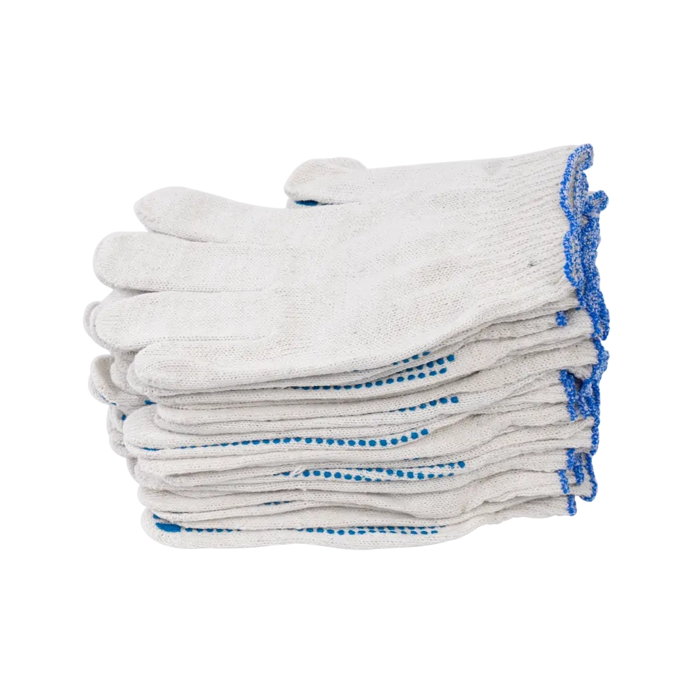 Необходимое средство защиты рук в строительстве, в хозяйственной деятельности. Работать в таких удобно и комфортно. Хлопчатобумажная ткань, из которых изготавливаются перчатки хб, обладает высокой гигроскопичностью. Благодаря этому руки во время работы не потеют. Не вызывают каких-либо кожных раздражений, аллергических реакций. Слой ПВХ наносится на перчатки, что делает изделие еще более надежными и крепкими. Перчатки с ПВХ напылением подойдут для большинства складских и бытовых задач. Кроме этого, благодаря нанесения ПВХ появляется возможность работать в х/б перчатках с острыми, колкими, режущими инструментами. Защищают от скольжения. На манжетах – резинки, с помощью которых работа в перчатках становится более удобной и комфортной.