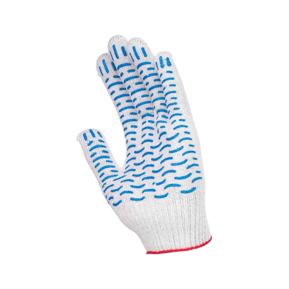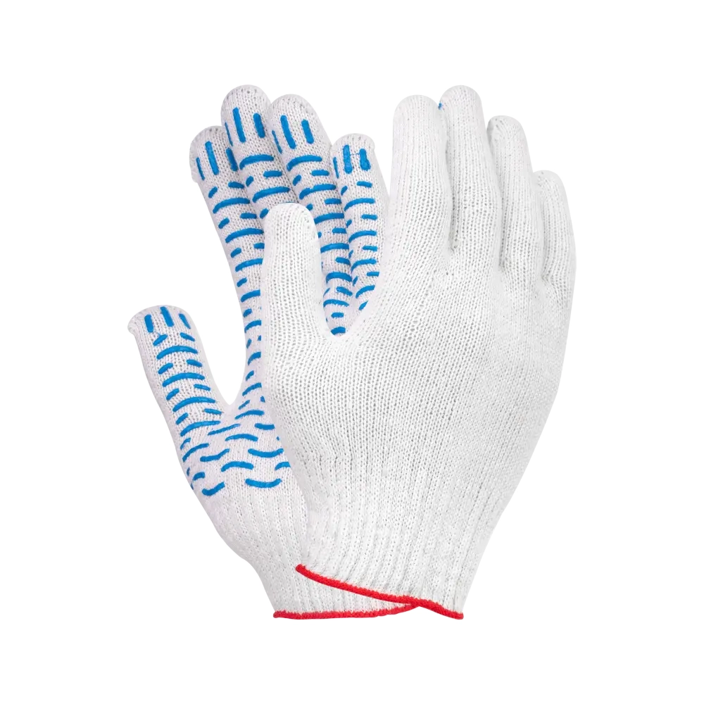 Хлопчатобумажные перчатки используются в строительстве, во время ремонта, садово-огородных работ, на субботниках, многих видах производства. Такие перчатки позволяют уберечь руки от всевозможных механических повреждений: царапин, заноз, порезов. Перчатки получили широкое распространение благодаря ряду положительных характеристик: гипоаллергенность, экологичность, удобство при работе, практичность. Благодаря ПВХ-покрытию количество этих характеристик заметно увеличивается. Покрытие ПВХ улучшает сцепляемость с предметами, ликвидирует соскальзывание, повышает износостойкость изделия.