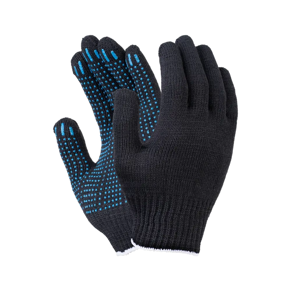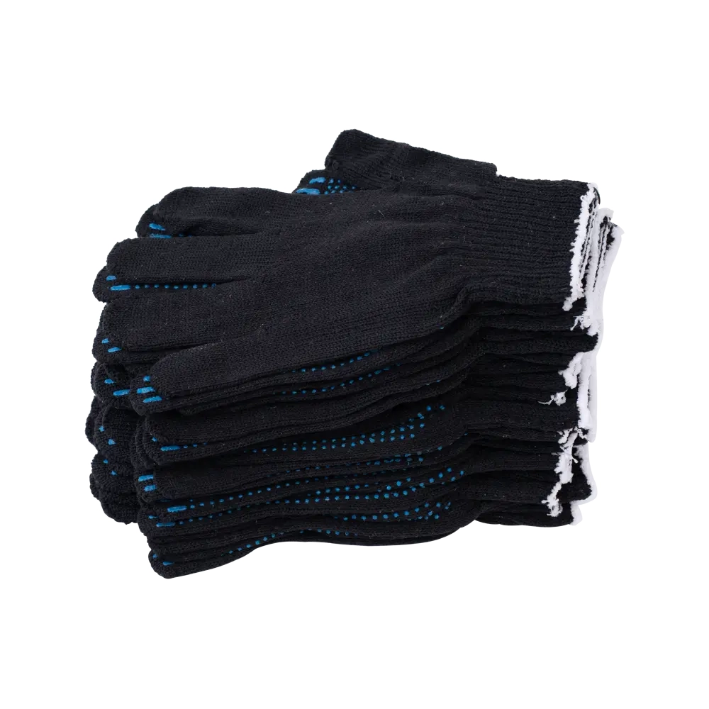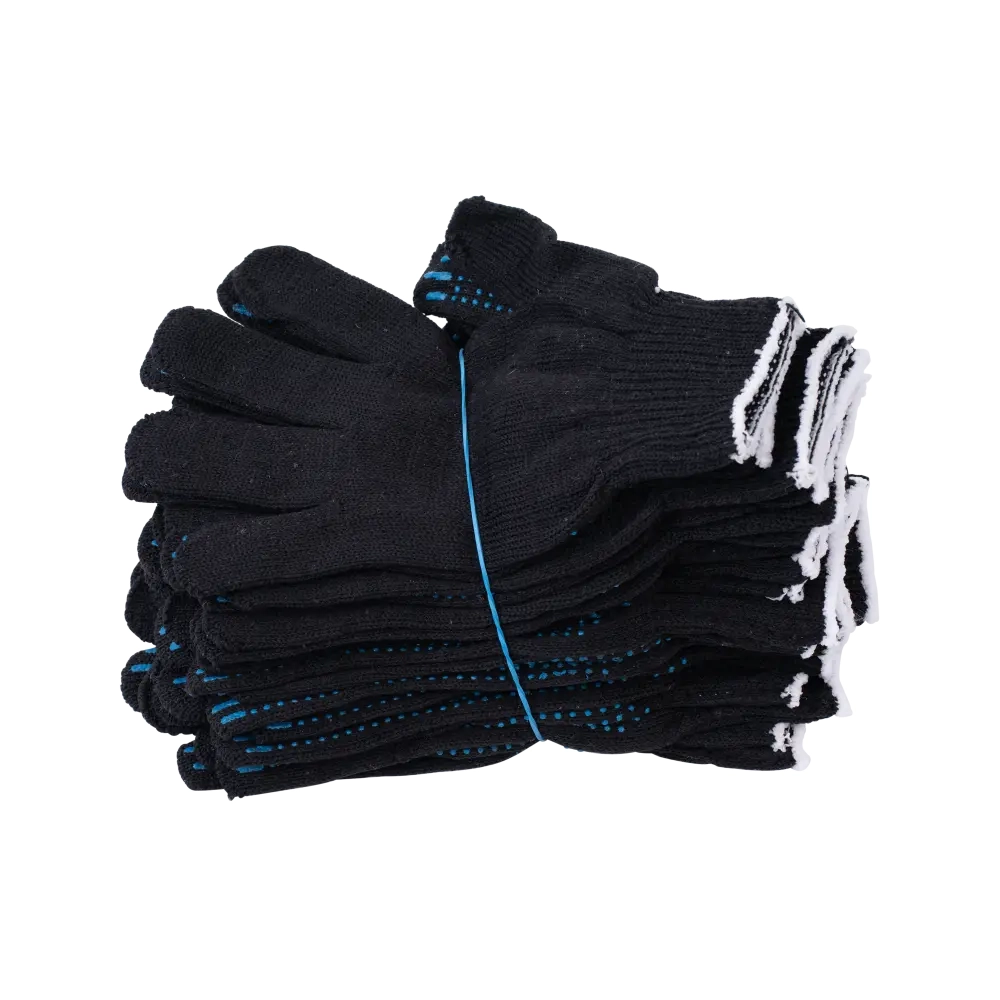 Перчатки х/б с ПВХ, 48гр, 10 класс, точка, черные