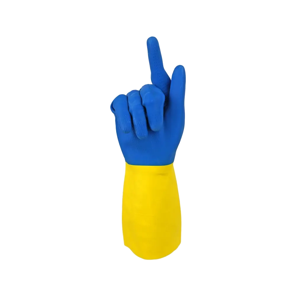 Перчатки LNF-05 Союз, изготовленные из латекса и неопрена, защищают от кислот и щелочей, обладают эластичностью и при пониженных температурах, большой прочностью при растяжении. Внутри перчаток – хлопковое напыление, предотвращающее появление аллергических реакций и раздражения рук. Выдерживают концентрацию кислот до 80%, щелочей до 50%. Это изделие можно использовать вместо перчаток КЩС тип I и перчаток из бутилкаучука. Категория риска:3. Применение: химическая промышленность, сельское хозяйство, лакокрасочное производство, общетехнические работы и другие сферы.