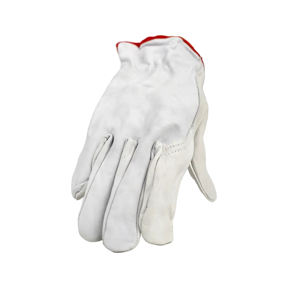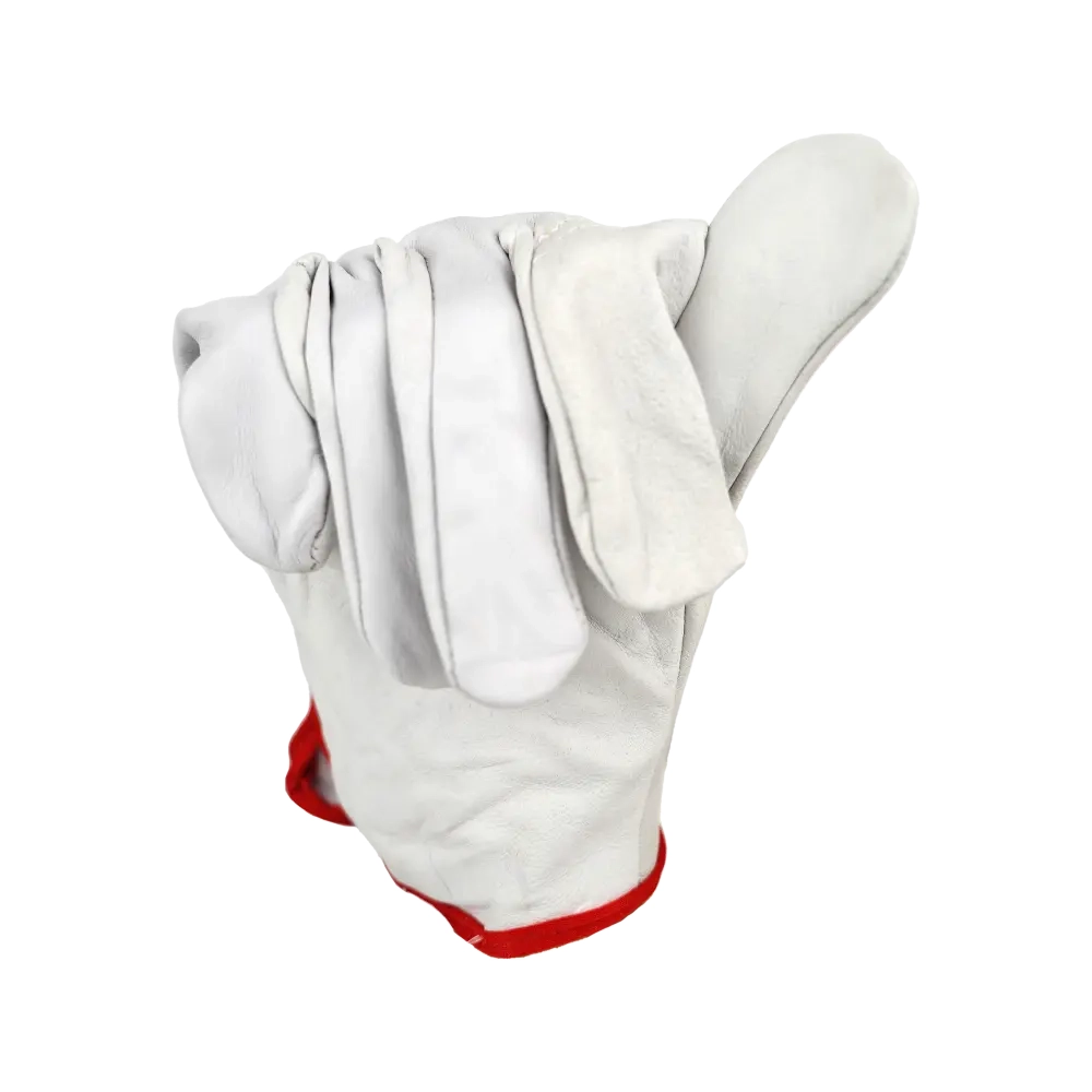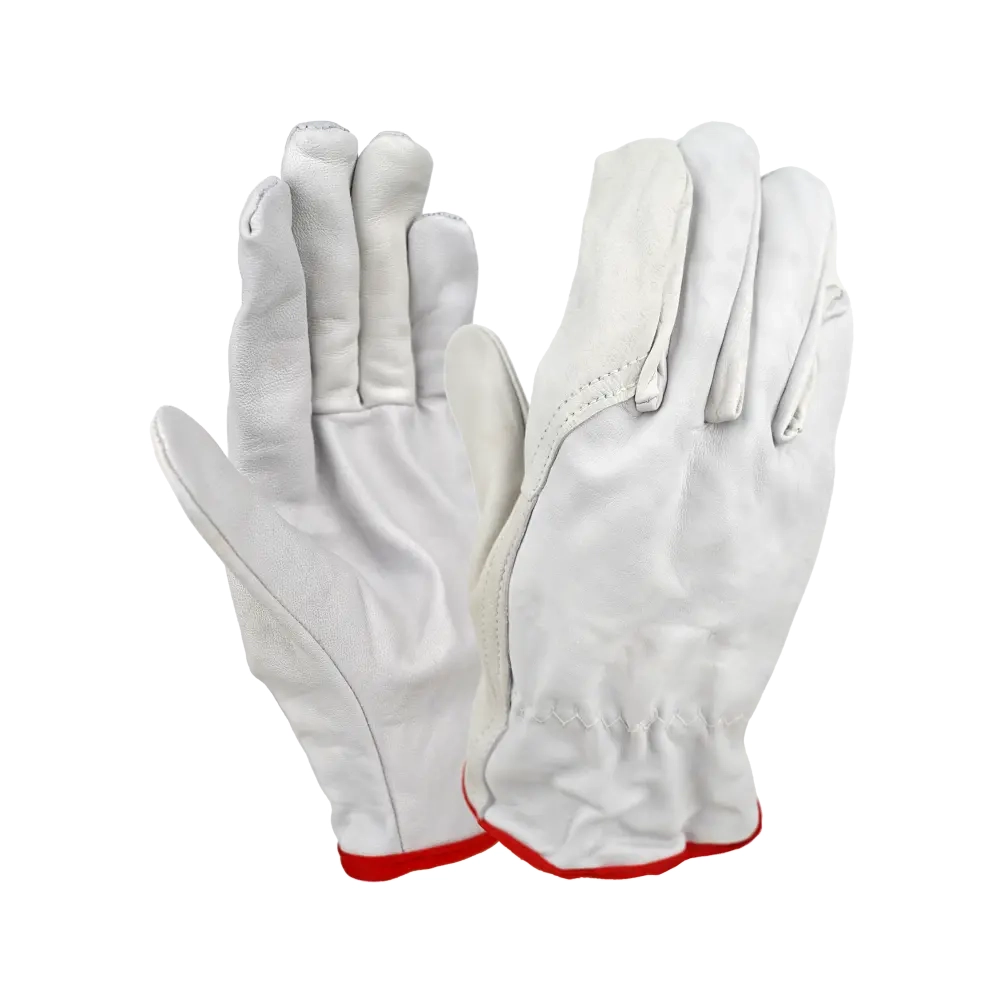Перчатки из кожи (белого или бежевого цвета). Кожа толщиной 1,1 мм (+/- 0,1), сорт АВ. На запястье резинка. Перчатки предназначены для защиты рук от ОПЗ, истирания, обеспечивают высокий комфорт, рекомендованы для продолжительного ношения, при работе с инструментом, для водителей.