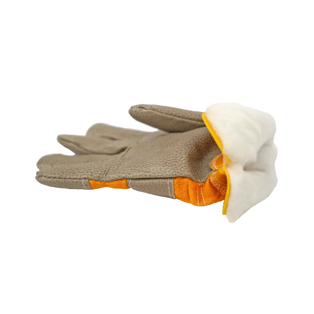 Перчатки «Юкон» производят из натуральной телячьей кожи А-сорта, тыльная сторона ладони и манжета выполнены из смесовой ткани. Перчатки изготавливают в полном соответствии стандартам ГОСТ 12.4.010-75 с соблюдением всех санитарных норм.