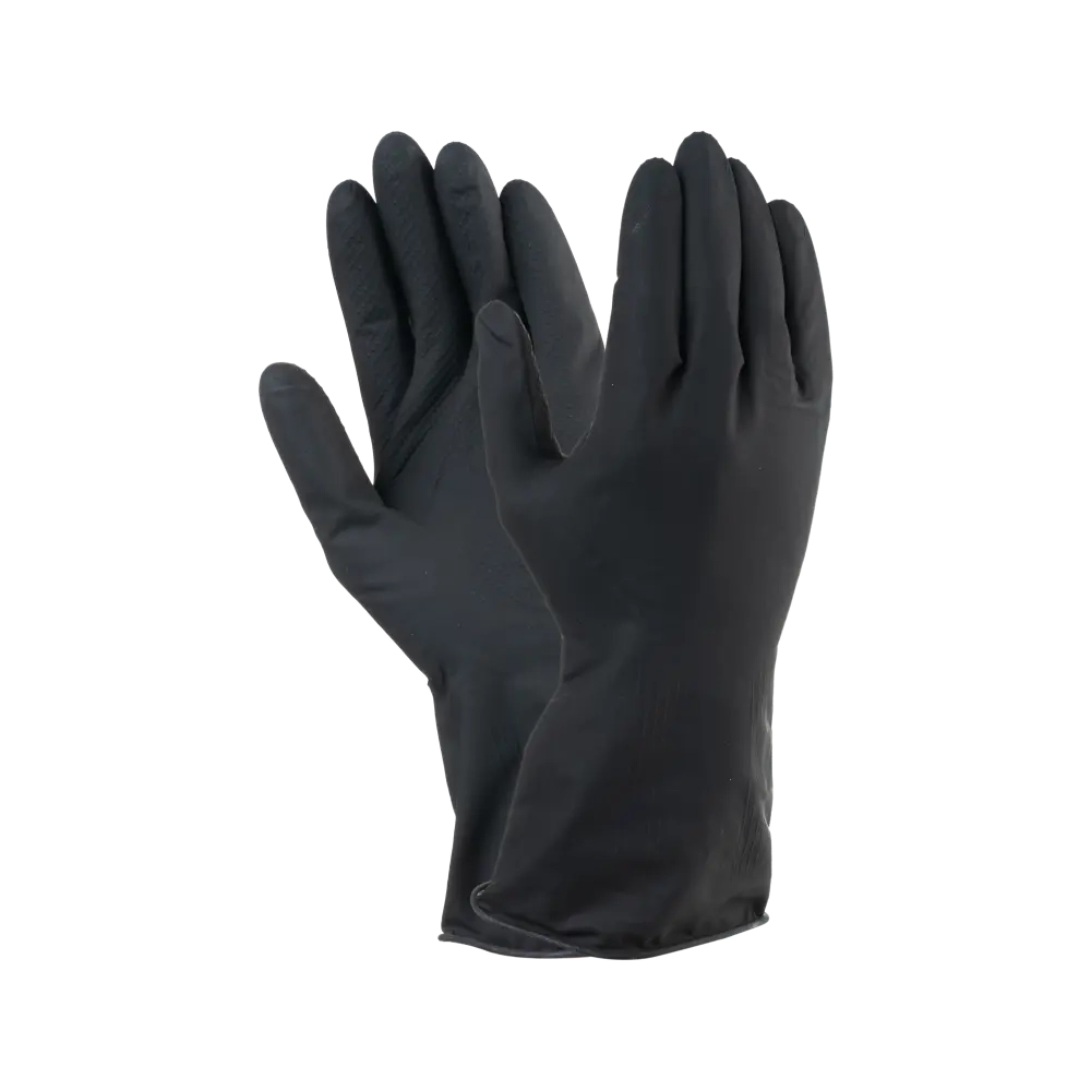 Перчатки КЩС Тип 2 состоят из двух слоев. В составе верхнего – латекс с добавлением сажи. Внутренний изготовлен из латекса высокого качества, который предотвращает возникновение аллергических реакций. Небольшая толщина изделия помогает выполнять точные работы. При этом сохраняется высокая тактильная чувствительность пальцев. Основное применение: защита рук при работе с растворами кислот и щелочей (до 20%), солями, сыпучими и красящими веществами, растительными и животными жирами.
