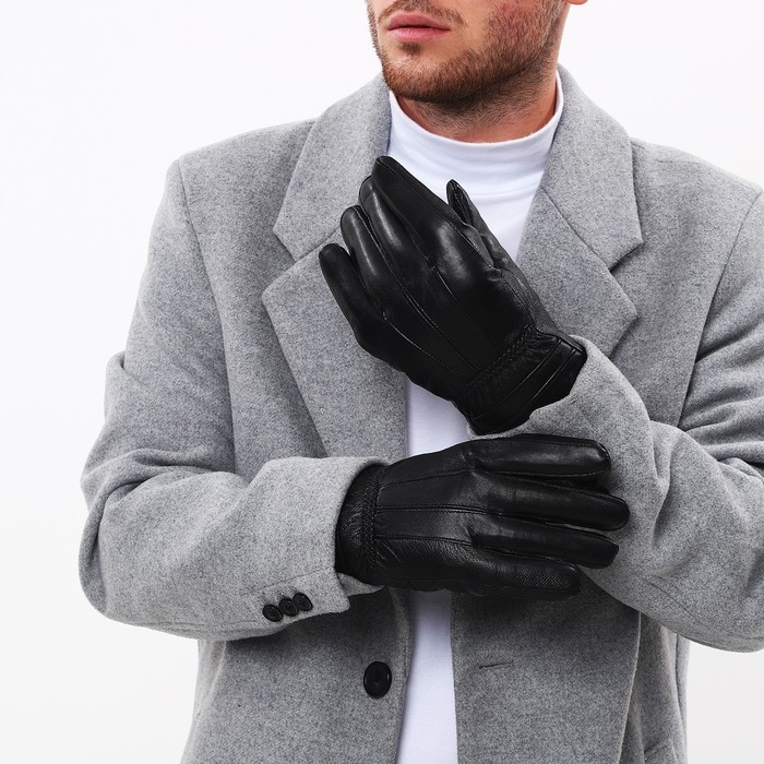 Перчатки мужские, размер 22, с утеплителем, цвет чёрный