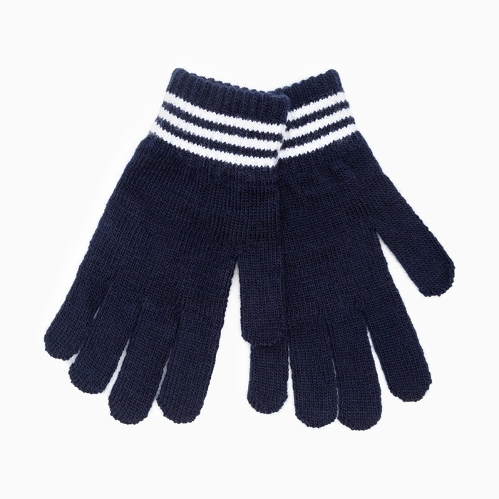 Перчатки одинарные детские, цвет тёмно-синий, размер 16 (9-12 лет)