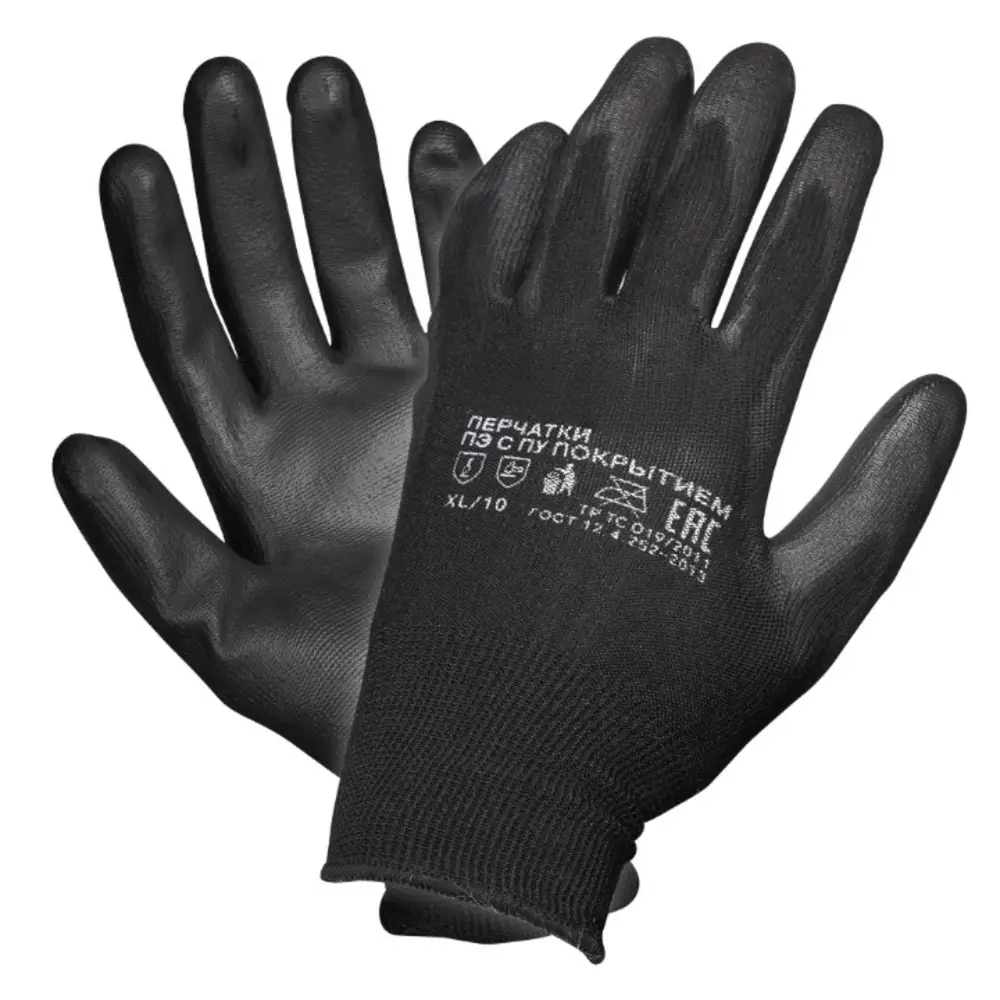 Применяются для защиты кистей рук от загрязнения, механических повреждений. Полиэфирные перчатки отличаются не только высокими показателями прочности, но и особой структурой ткани, которая дает возможность оставаться пальцам чувствительными. Перчатки подойдут для работы с малогабаритными деталями и мелкими механизмами. Перчатки изготовлены из черного тонкого полиэфира схожего с нейлоном и пропитаны полиуретаном серого цвета в области ладони и пальцев. Используются в быту и на производстве требующем высокой точности движений.