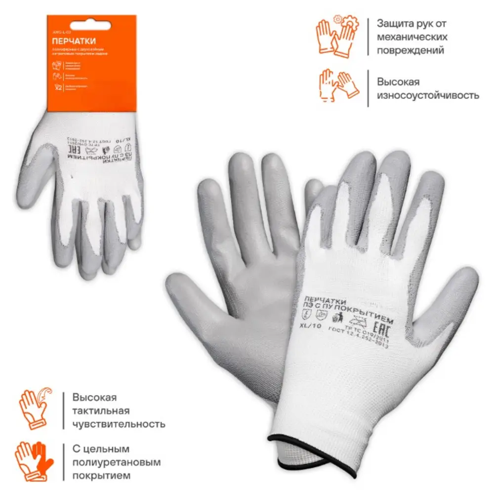 Перчатки полиэфирные с цельным ПУ покрытием ладони (XL)