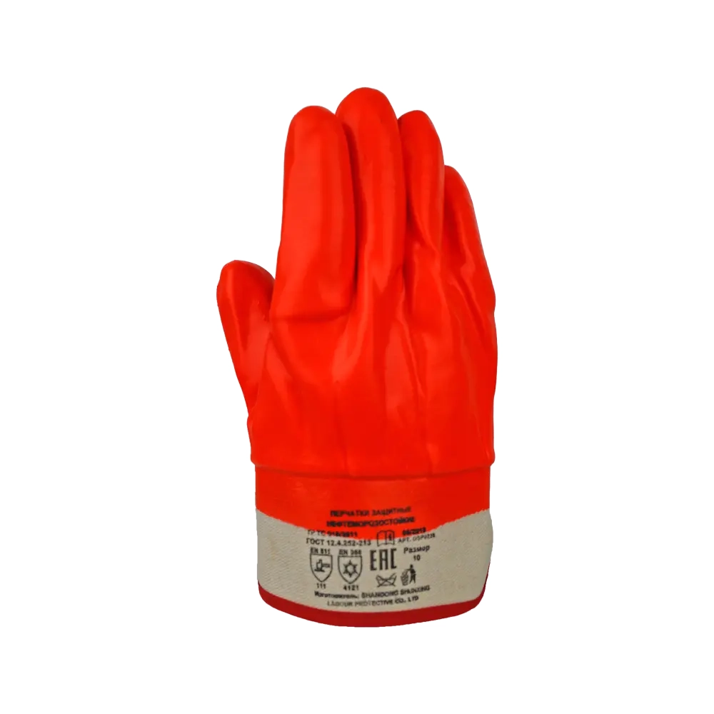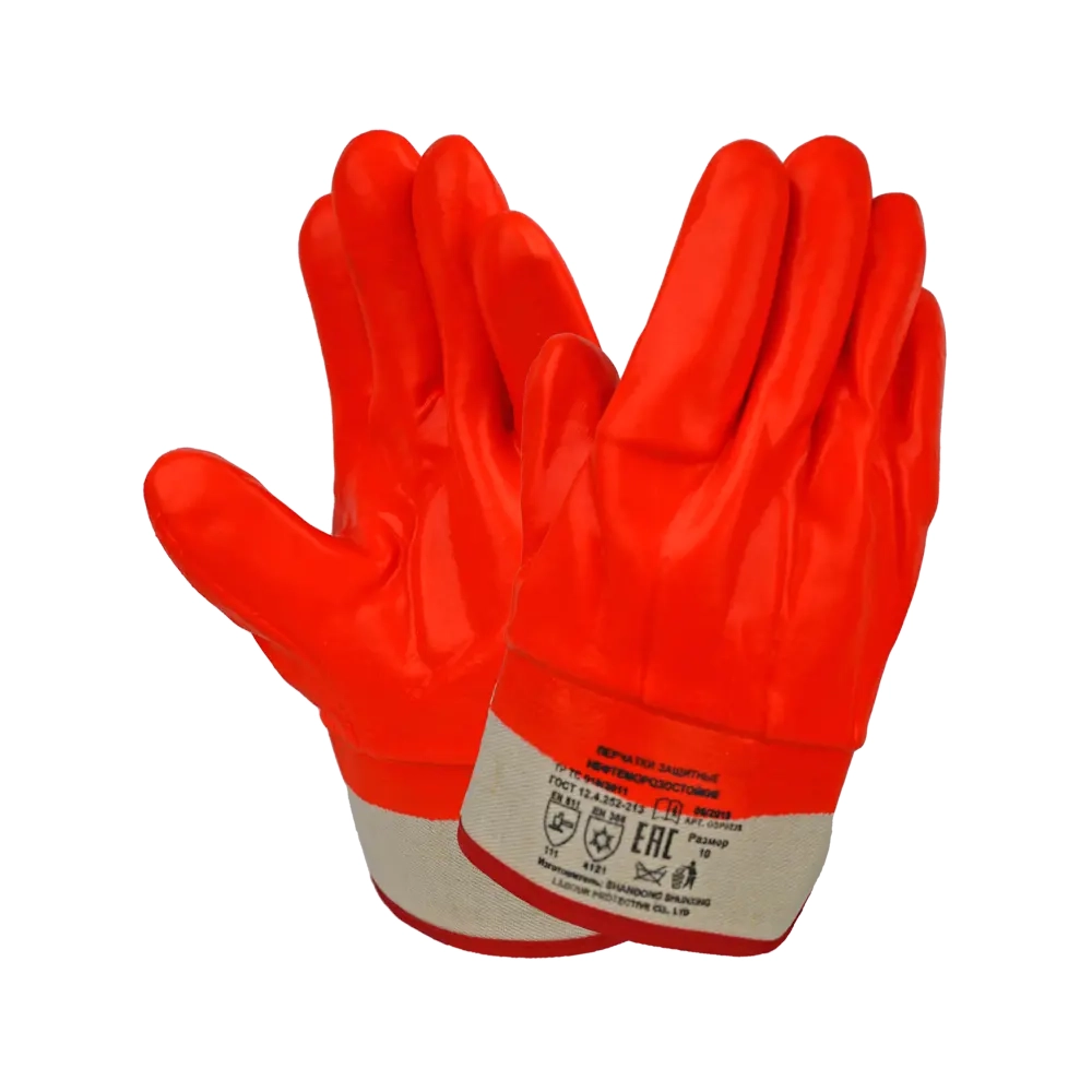 Перчатки ПВХ утеплённые бензомаслостойкие Пламя, манжет - крага