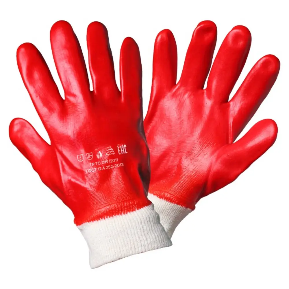 Применяются для защиты кистей рук от механических воздействий (истирания, проколов, порезов), от воды и растворов нетоксичных веществ. Имеют полное покрытие из ПВХ красного цвета. Данная модель перчаток водонепроницаема и предназначена для эксплуатации во время работ с различными вредными жидкостями.