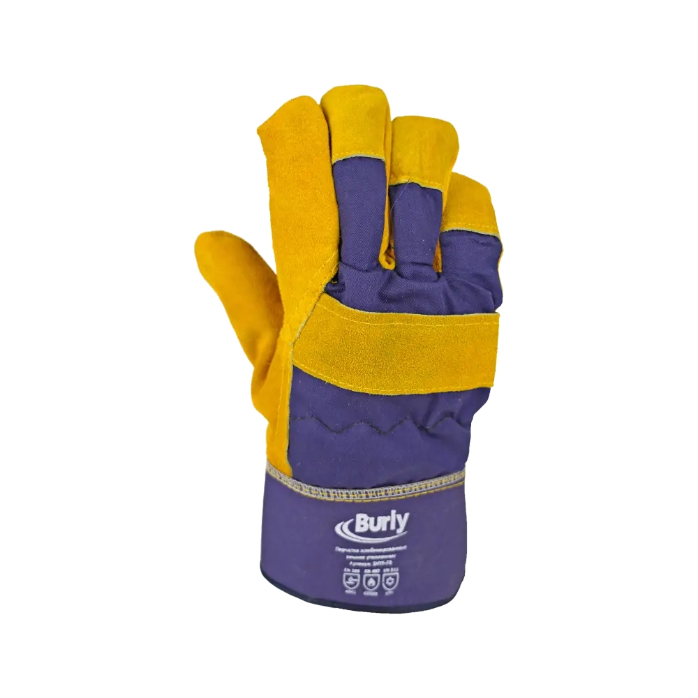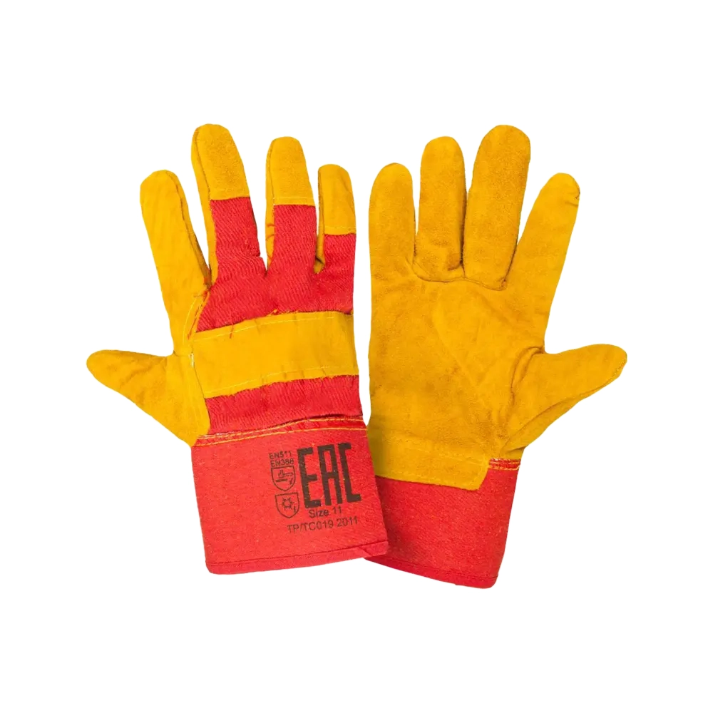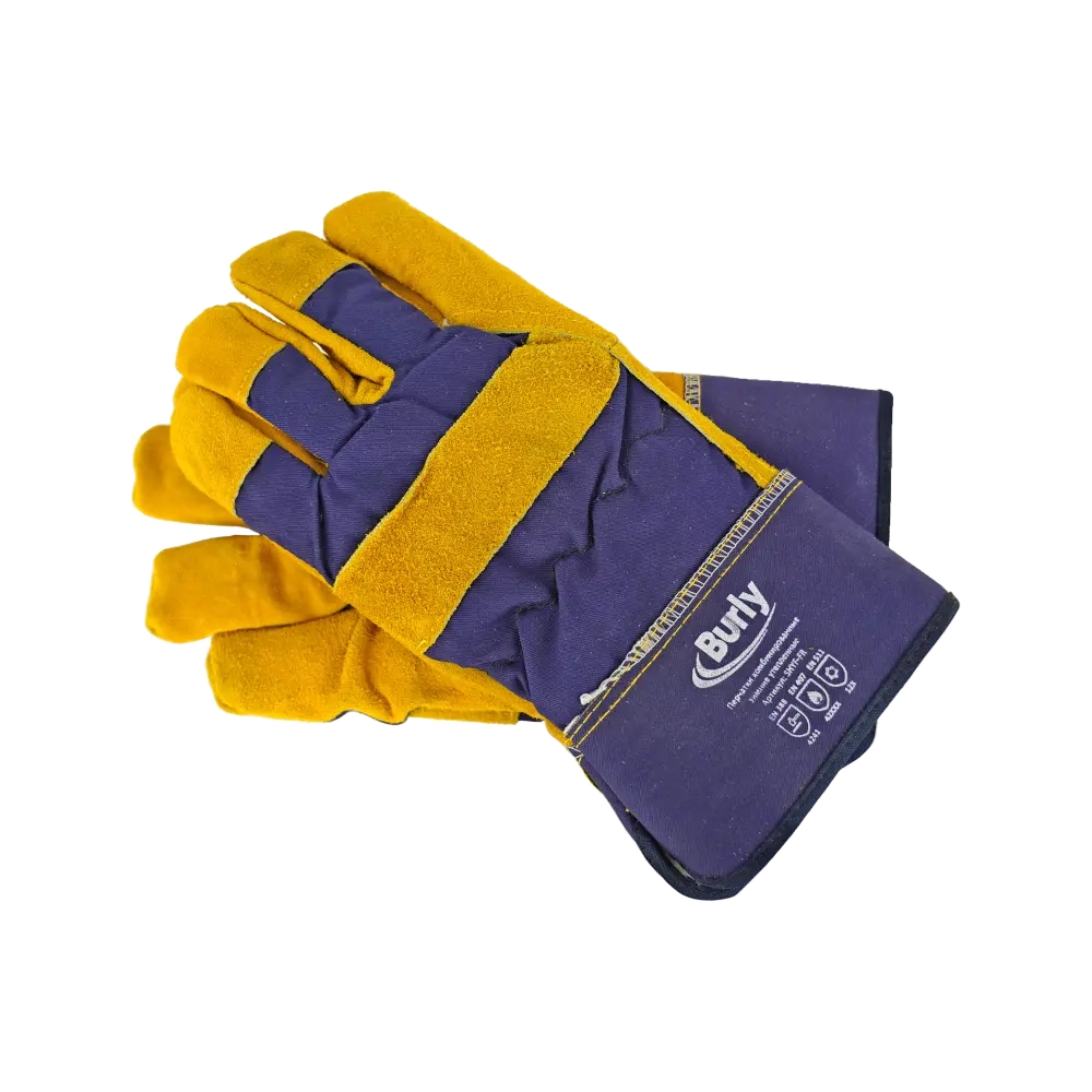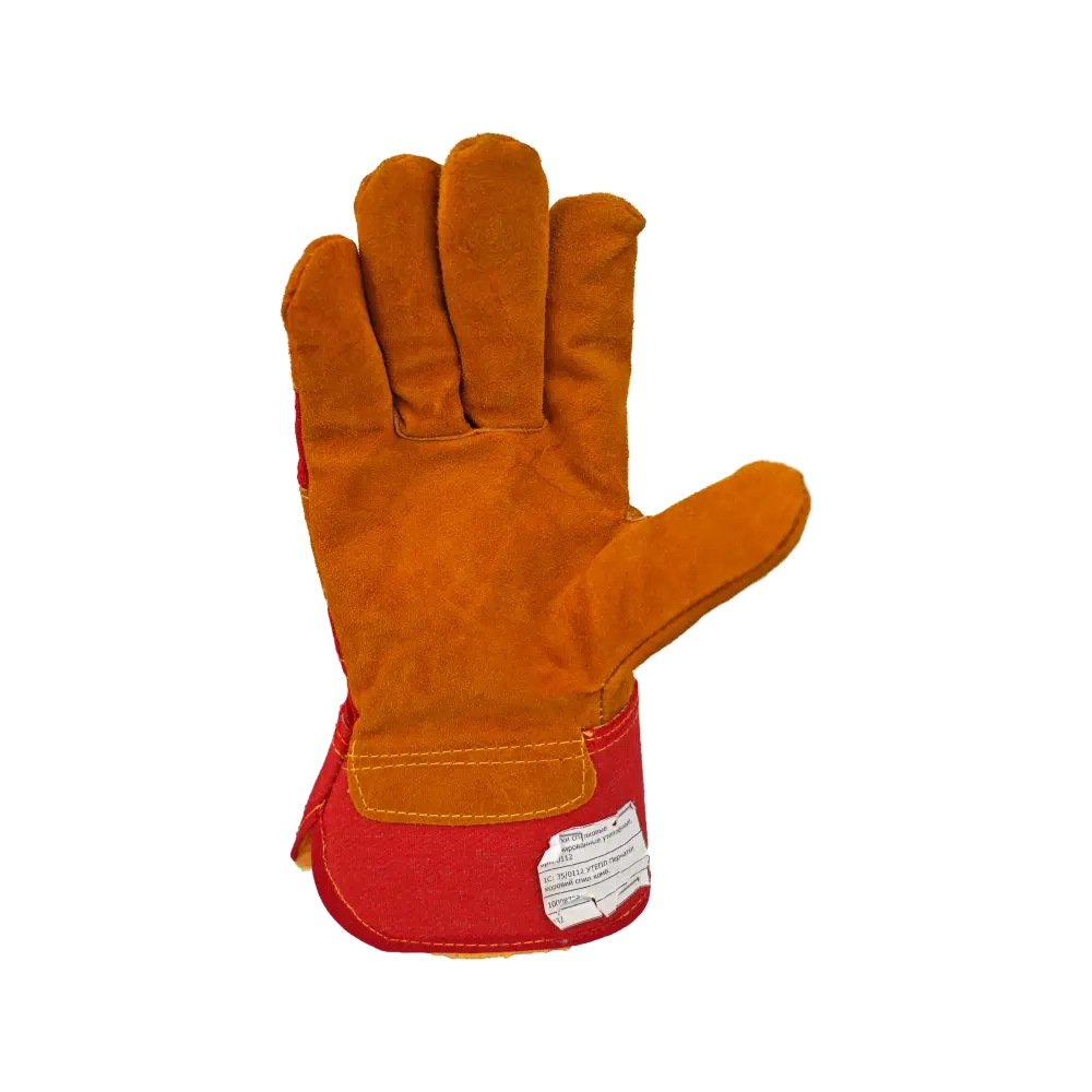 Утепленные спилковые комбинированные перчатки арт. 0112 используют для защиты рук от холода, порезов и ссадин во время промышленных работ в зимнее время года.