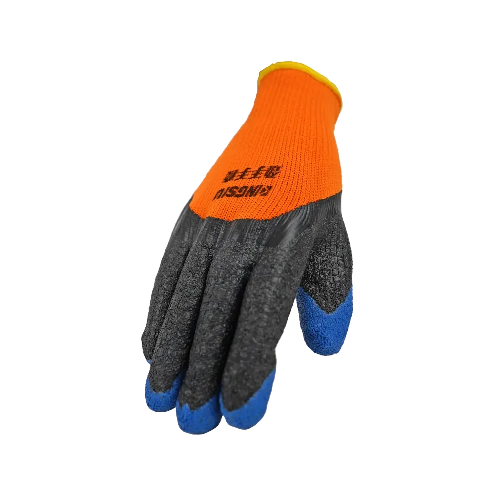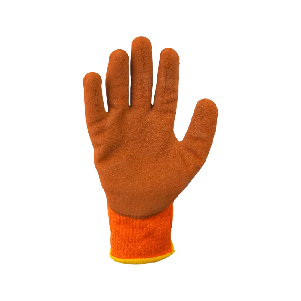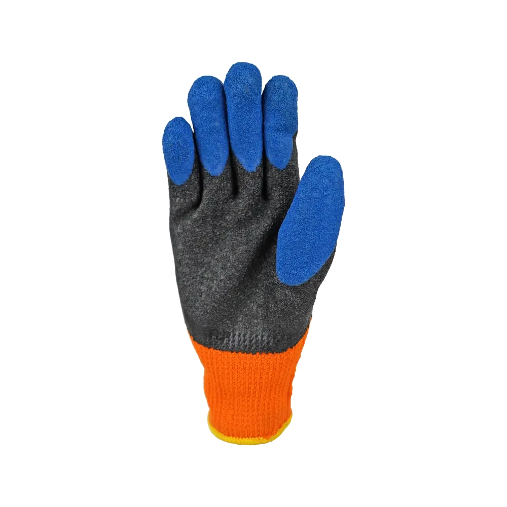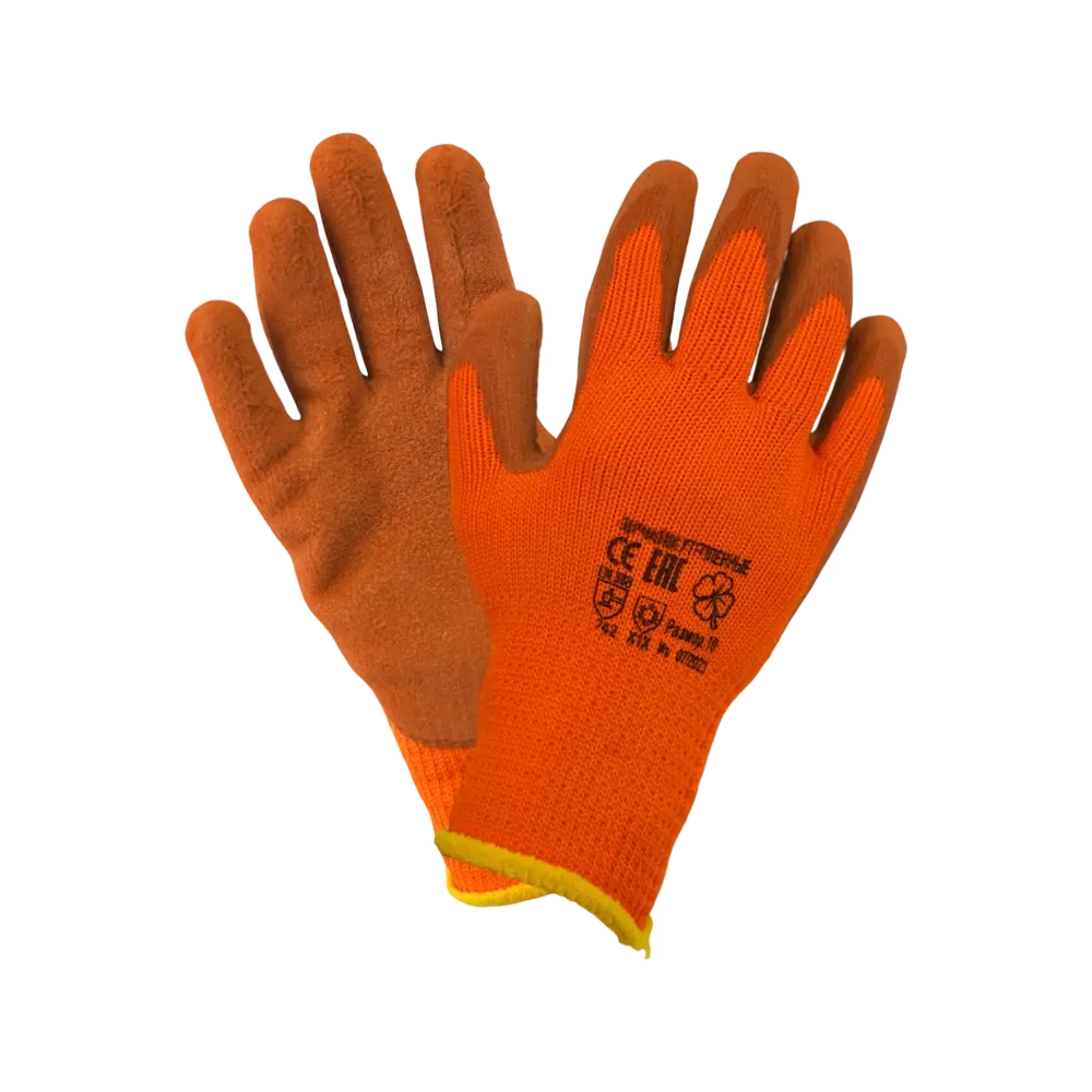Перчатки трикотажные с рифлёным латексным покрытием утеплённые ICE оранжевые
