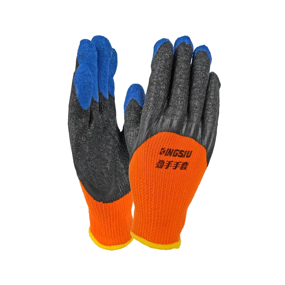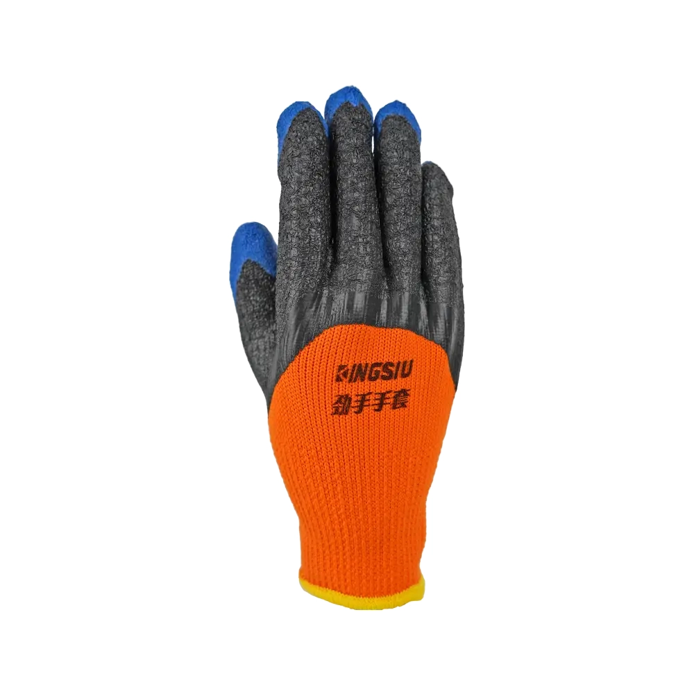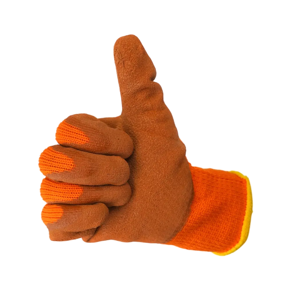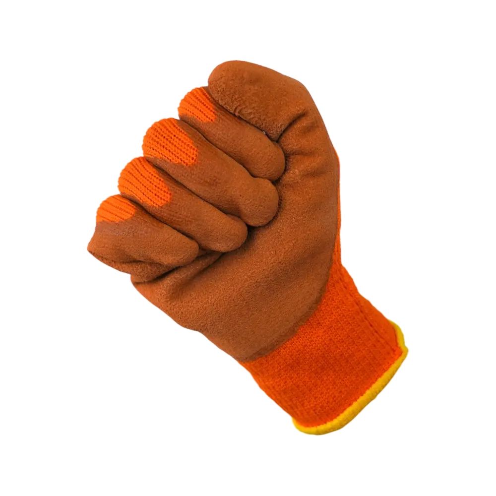 Перчатки трикотажные с рифлёным латексным покрытием утеплённые ICE оранжевые