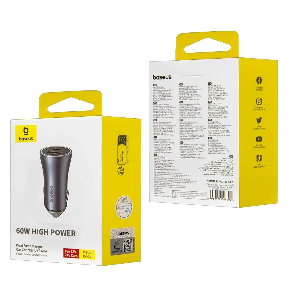 Переходник АЗУ на USB + Type-C 60W CGJM000113 Baseus серый
