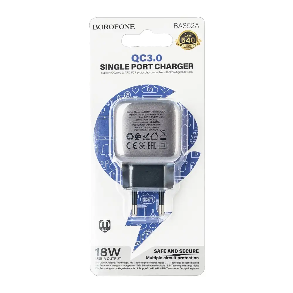 Переходник BAS52A СЗУ на USB 18W 3A Borofone черный