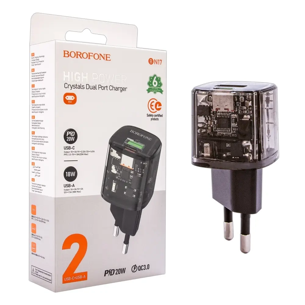 Переходник BN17 СЗУ на USB QC3.0 18W+ Type-C PD20W Borofone черный