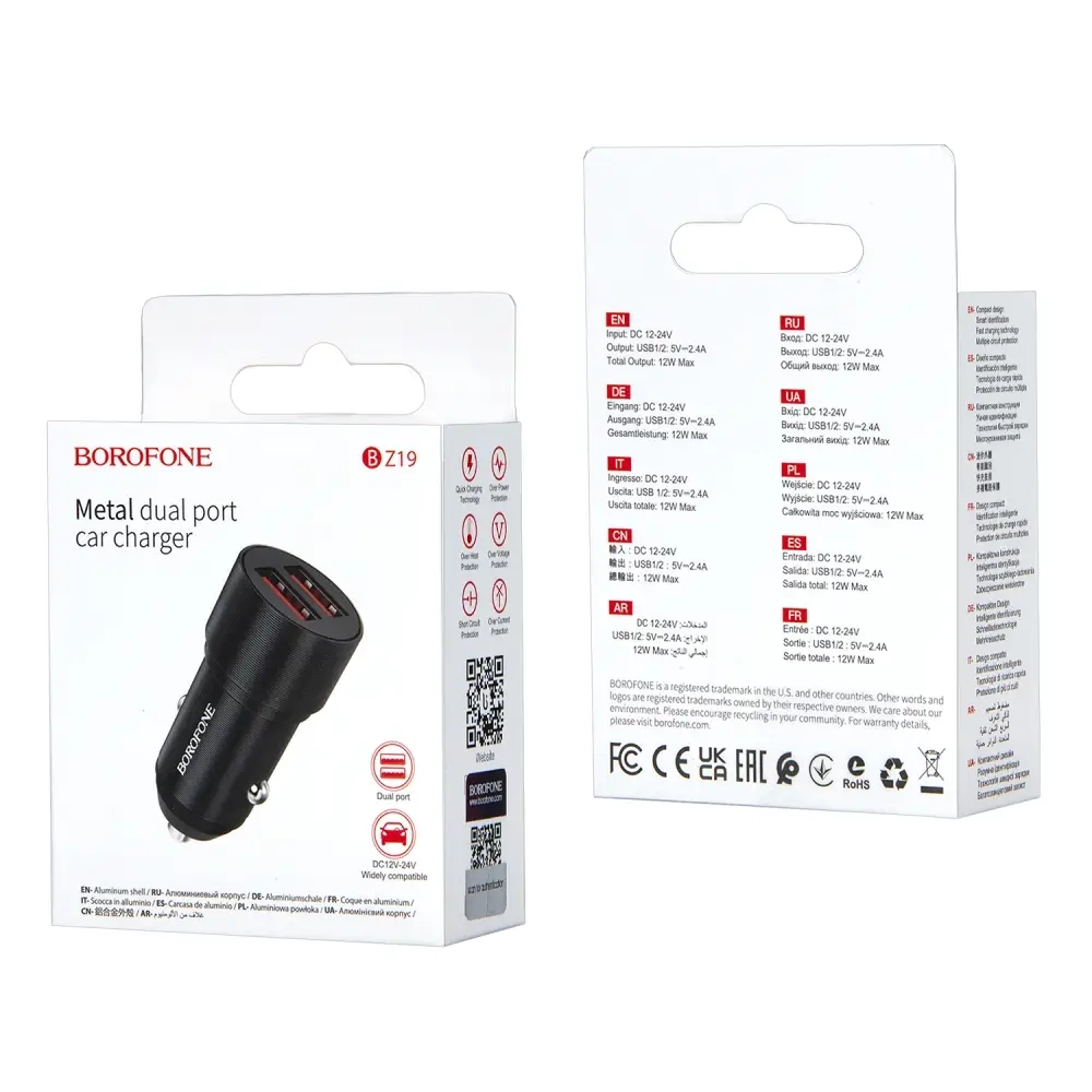Переходник BZ19 АЗУ на 2 USB 2.4A Borofone черный