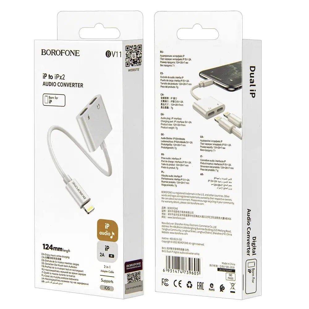 * Переходник Lightning на 2 Lightning BV11 124MM Borofone белый
